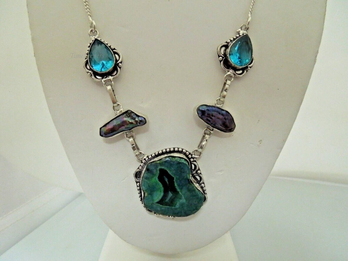 r626 Sterling Silver Multi gemstone Necklace Sterling Silver Pendant 20"