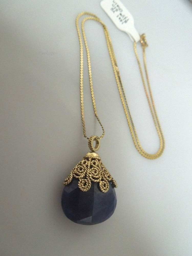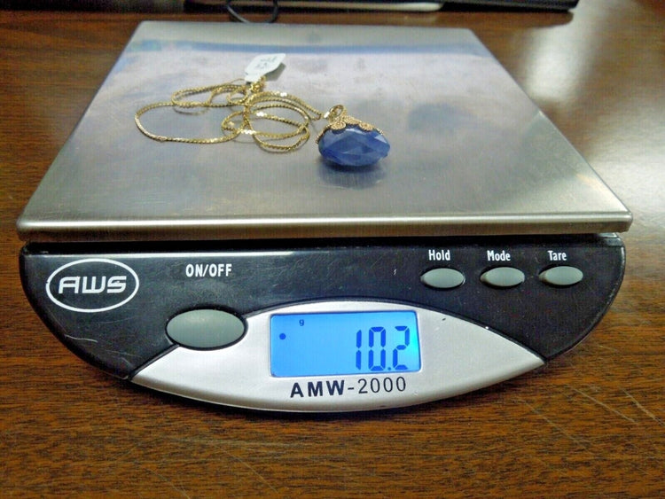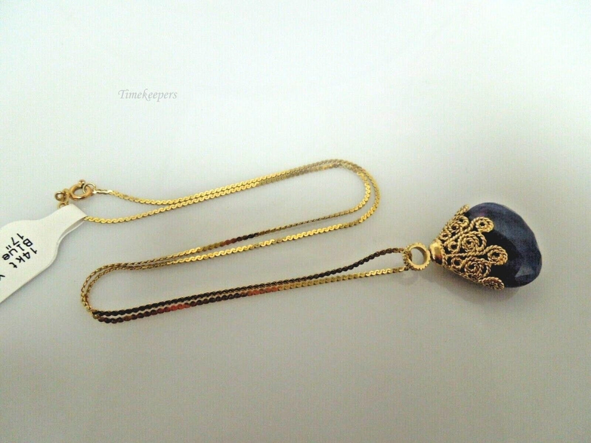 r951 14kt Yellow Gold Blue Stone Chain Necklace 17" signed 10.2g