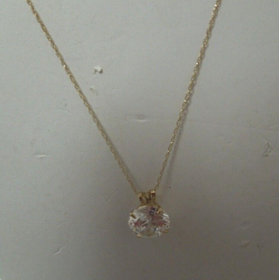 For Sale: (1) r971 10kt Yellow Gold Chain Cubic Zirconia Pendant 18" Signed 1.3g