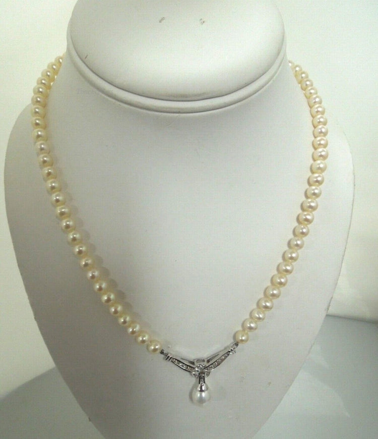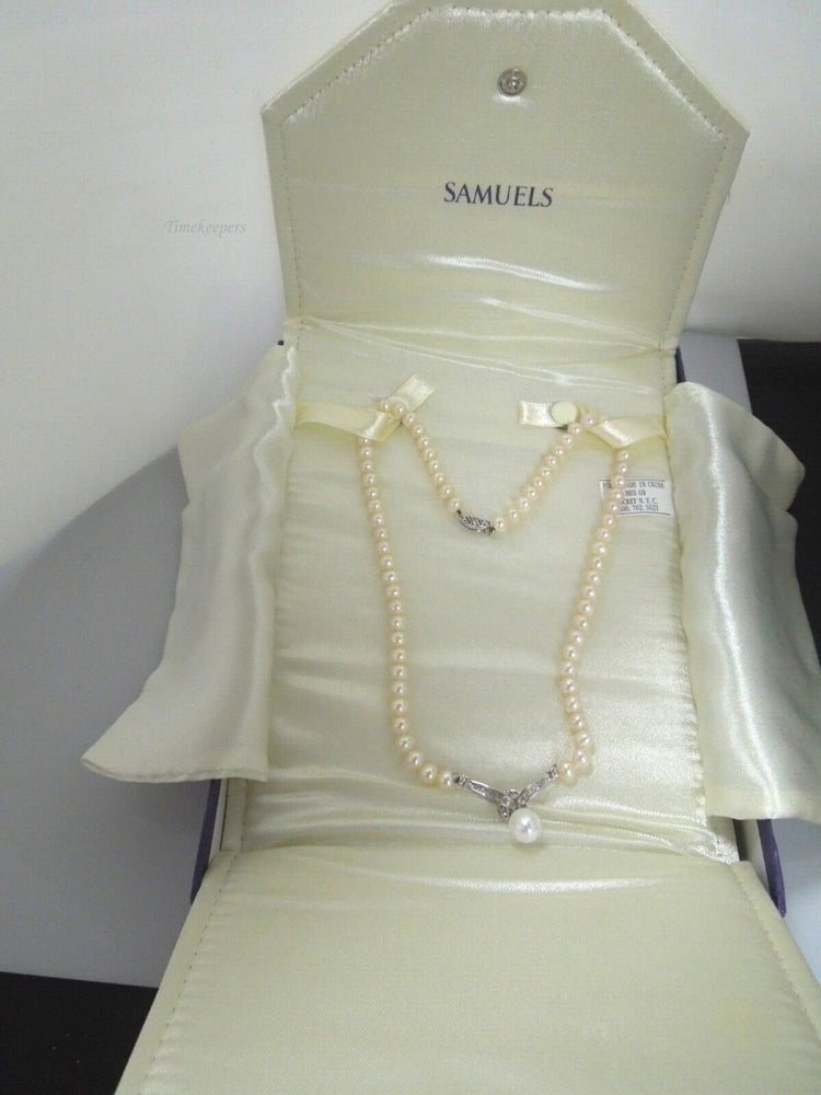 For Sale: (1) r985 Samuels 14kt White Gold Pearl Diamond Necklace 18" Signed Very Elegant