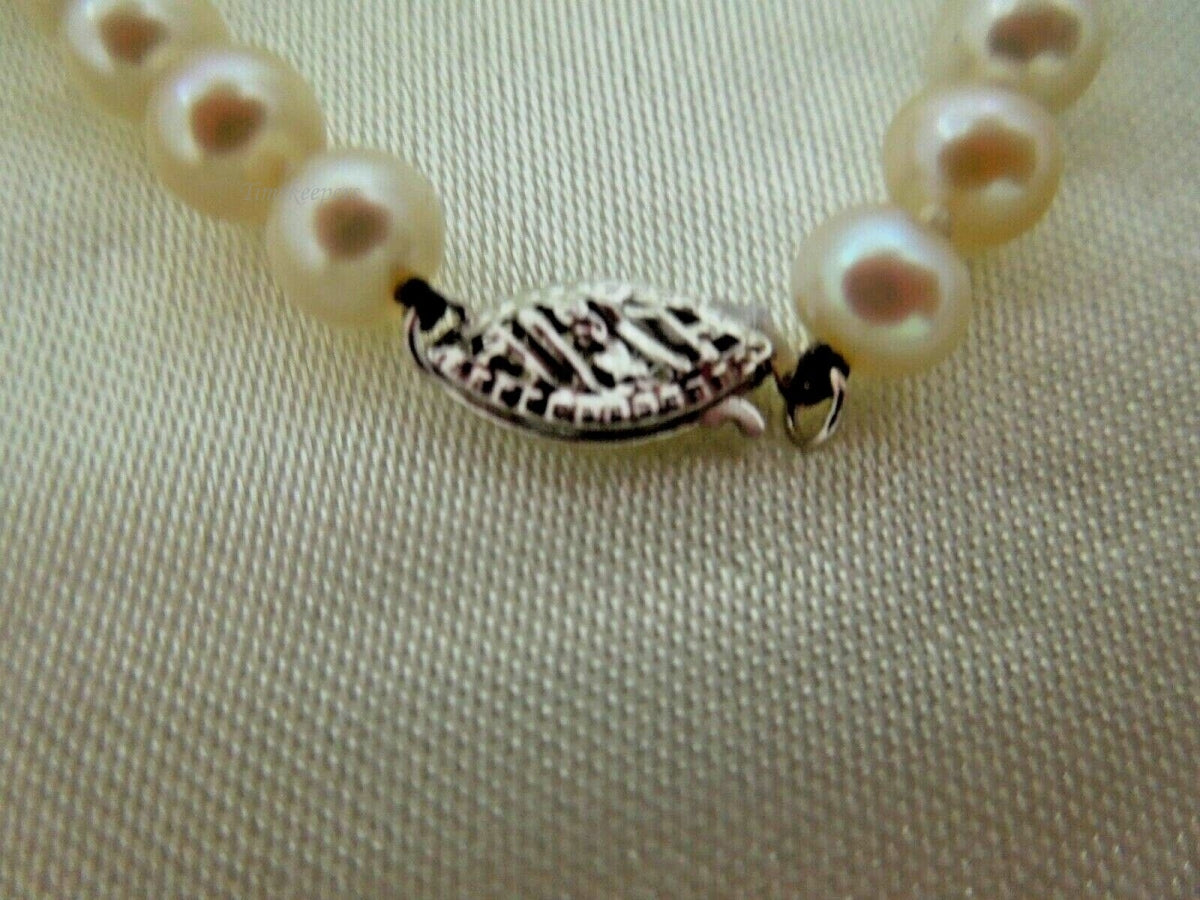 A charming vintage cultured pearl single string necklace with a 14ktk white gold clasp and pendant in Princess length. The circular pearls, 6mm in diameter, are individually knotted.