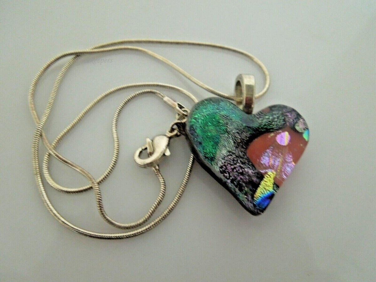 s003 Vintage Simple Sterling Silver Resin Heart Pendant Necklace