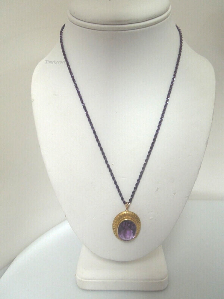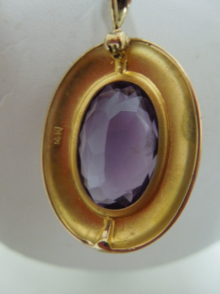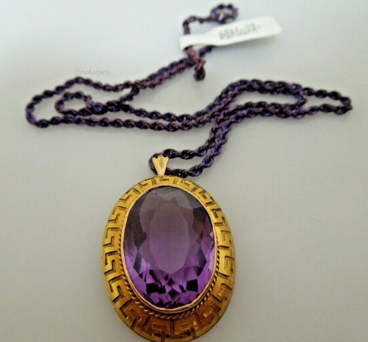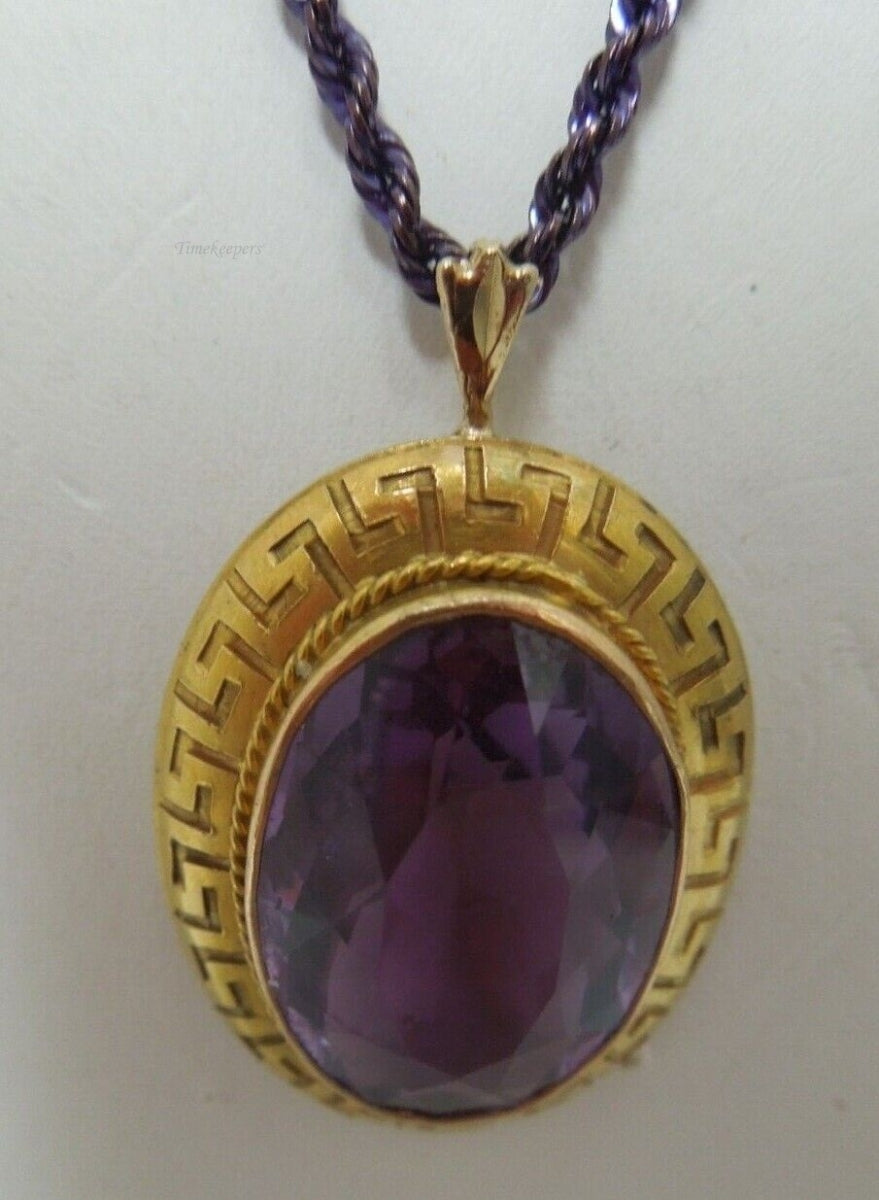 For sale: (1) s064 14k Gold Amethyst Pendant and 14k Peru JCM Rope Chain Necklace 20"