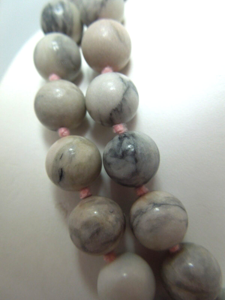 For sale: (1) s106 Vintage Matte Pink Zebra Stripe Jasper Beaded Necklace