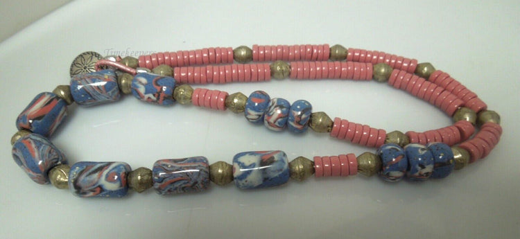 s115 Pretty Glass Beads Disc Necklace 24"
