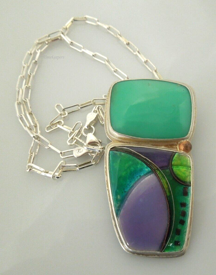 For sale: (1) s145 Paulasparks Studio Sterling Silver Enamel Pendant Necklace