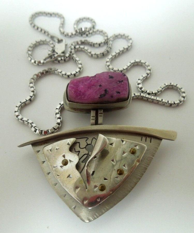 s150 Sterling Silver 925 Pink Druzy Bali Pendant Necklace 18"