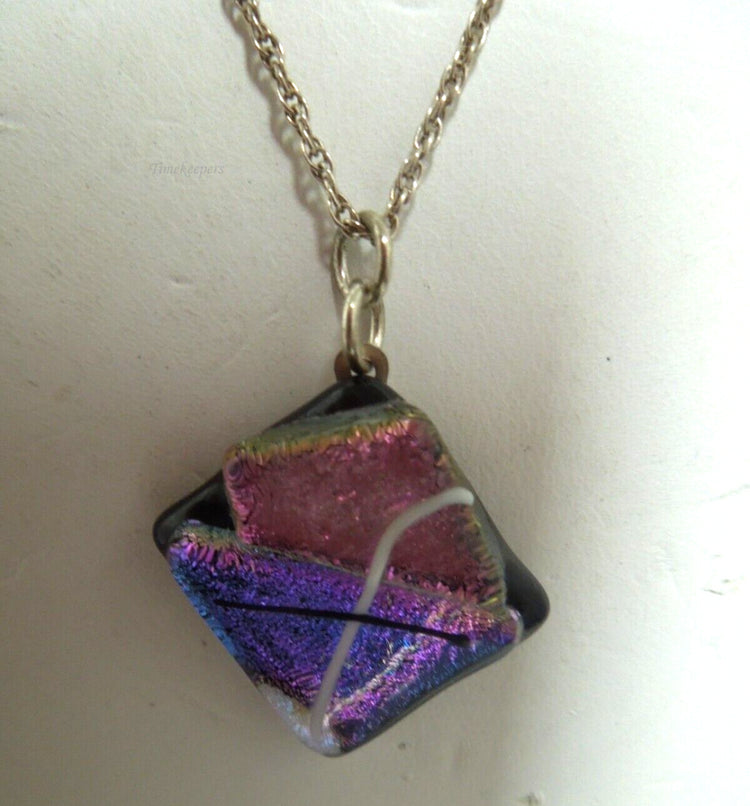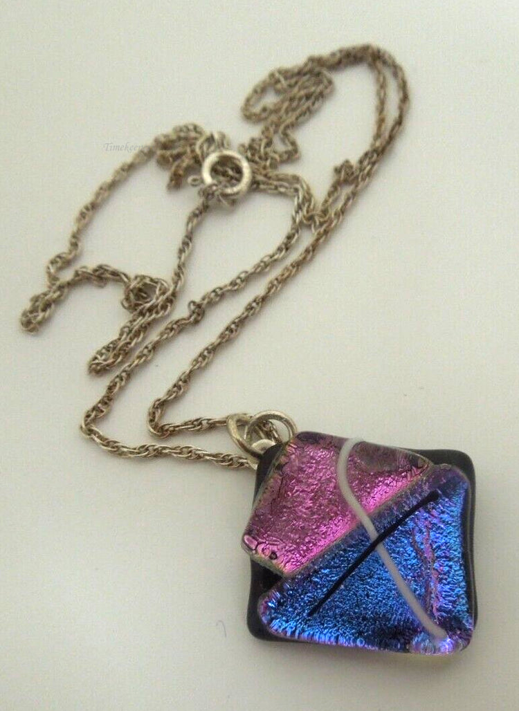 Pendant measures : 1" x 1/2" ( pendant has hues of purple and pink) looks like acrylic