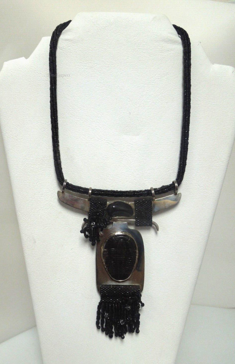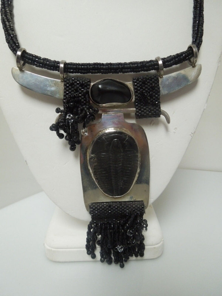 For sale: (1) s165 Solid Silver Set Trilobite Black Necklace - A Stunning Piece Of Fossil Jewellery Handmade