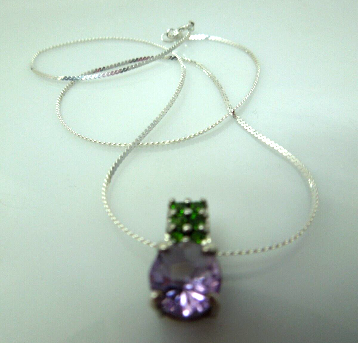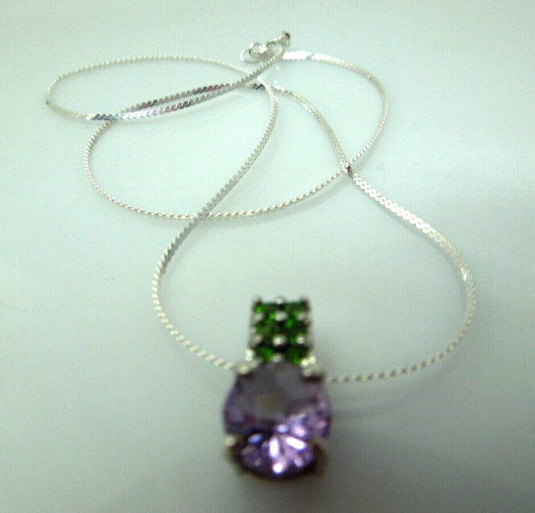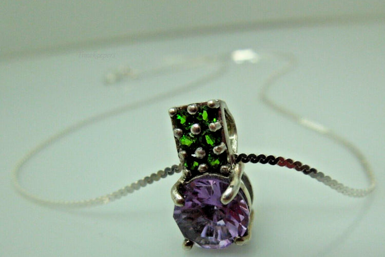 Offered here is Solid Sterling Silver Synthetic Purple and Green Stone Necklace