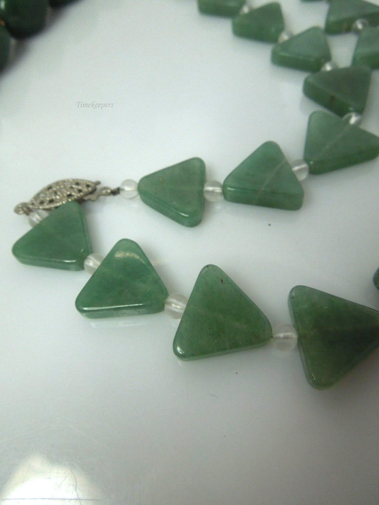 For sale: (1) t137 Set of 2 Green Aventurine faceted beaded Gold tone toggle Clasp Necklace and Green Aventurine Triangle Necklace with Silvertone Clasp