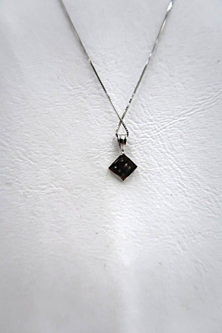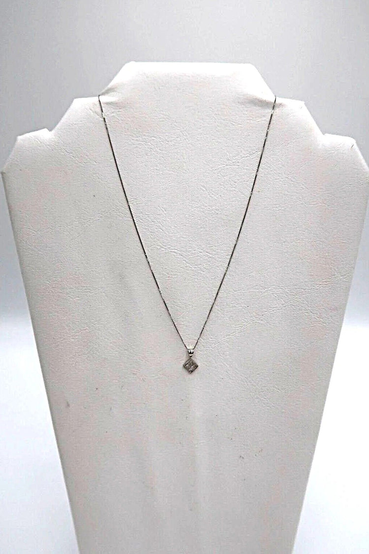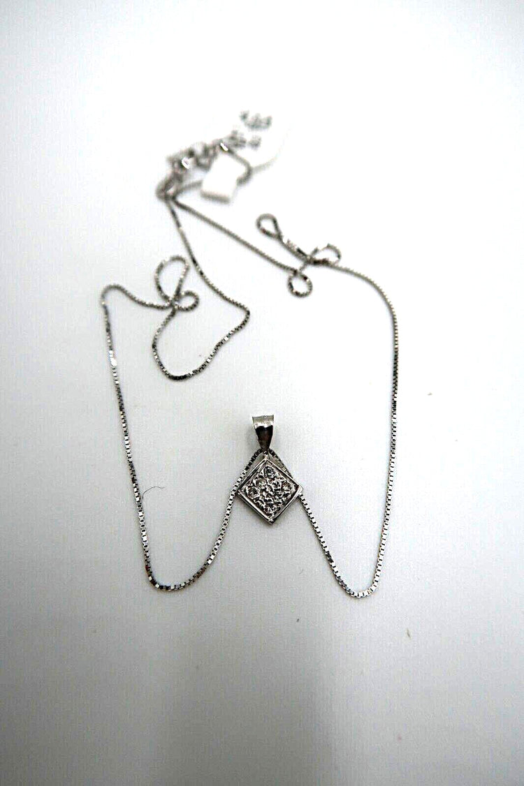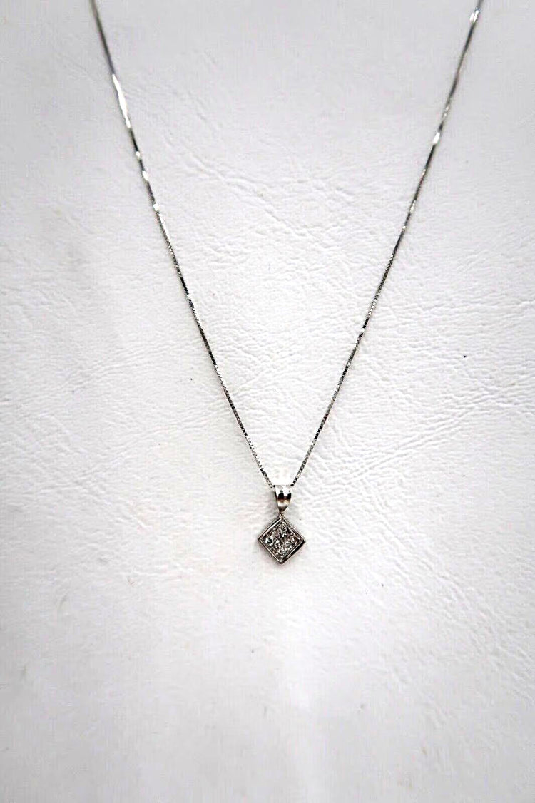 For sale: (1) t258 14kt White Gold 18" Box Chain Diamond with Square Pendant Necklace