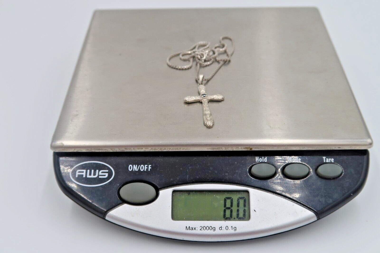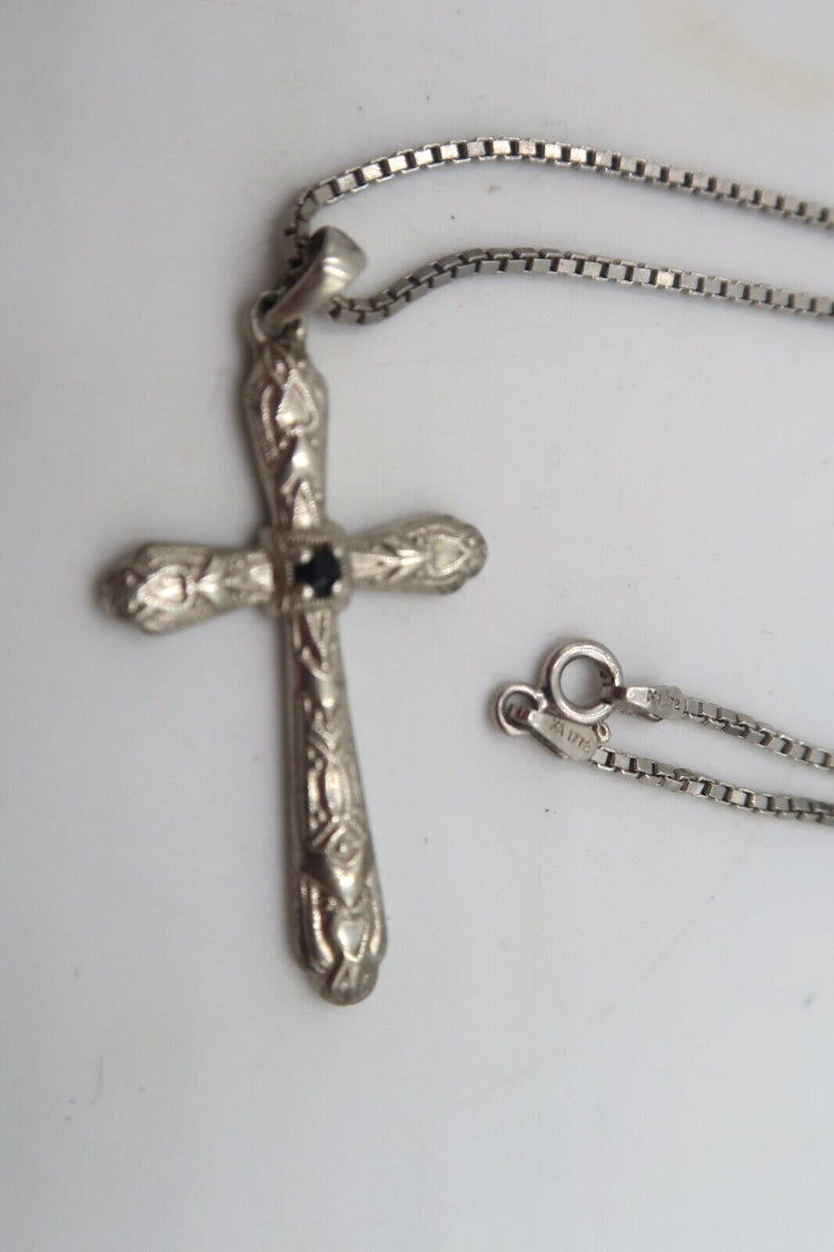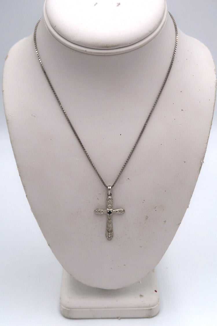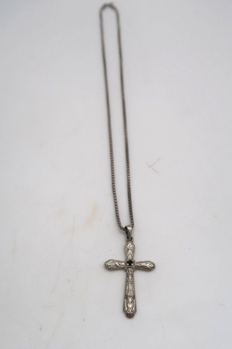 For Sale: (1) t608 Hand Made Beautiful Intricate Small Cross 925 With Blue Sapphire Necklace