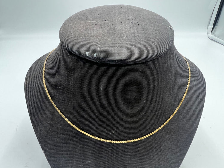 24 inch serpentine chain made of 14kt yellow gold. It is 2mm thick. 7 grams.
