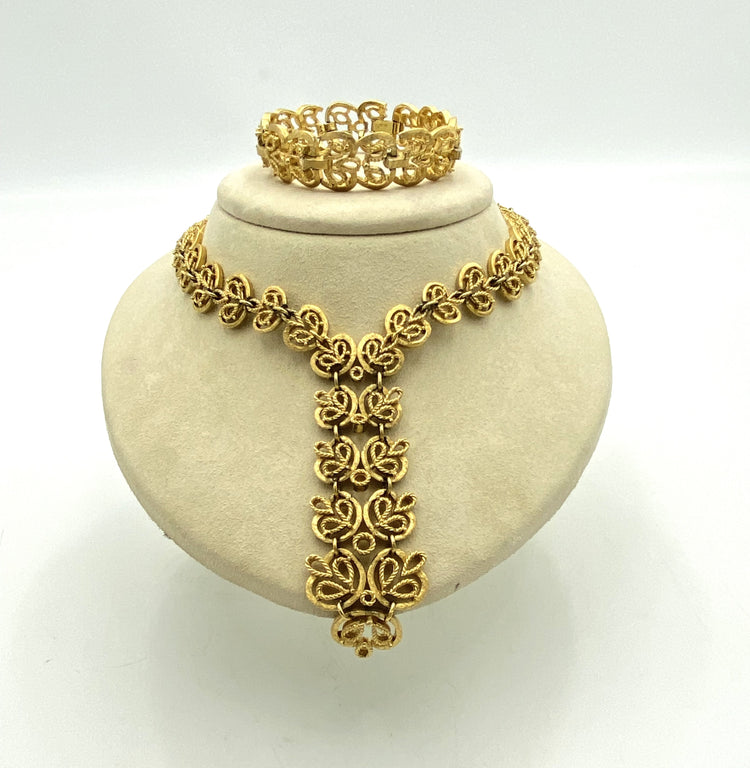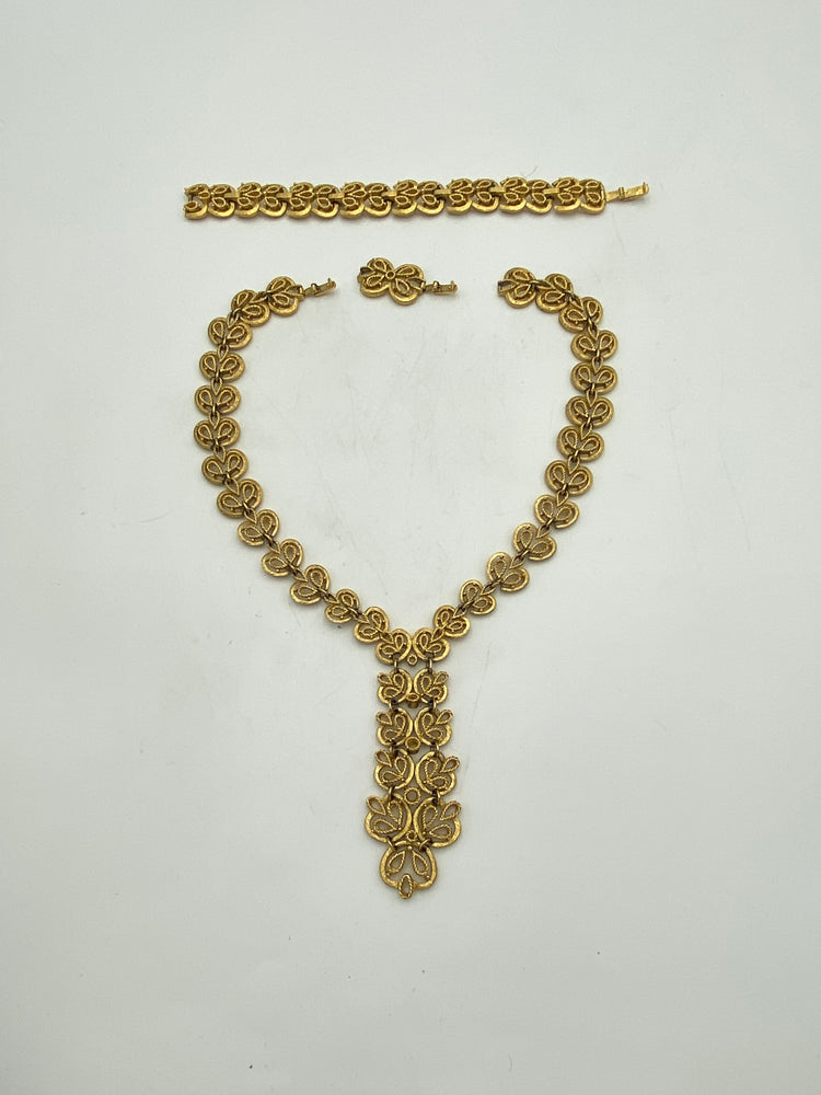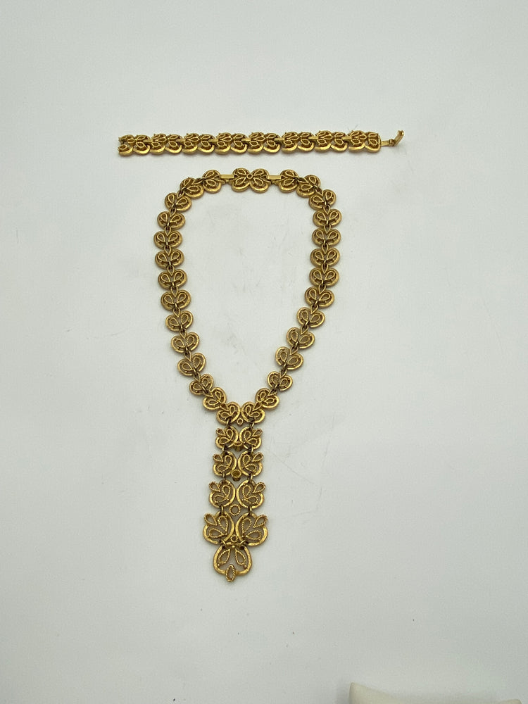 u310 Vintage TRIFARI Gold Filled Filigree Elegant Necklace 17" Bracelet 2pc Set