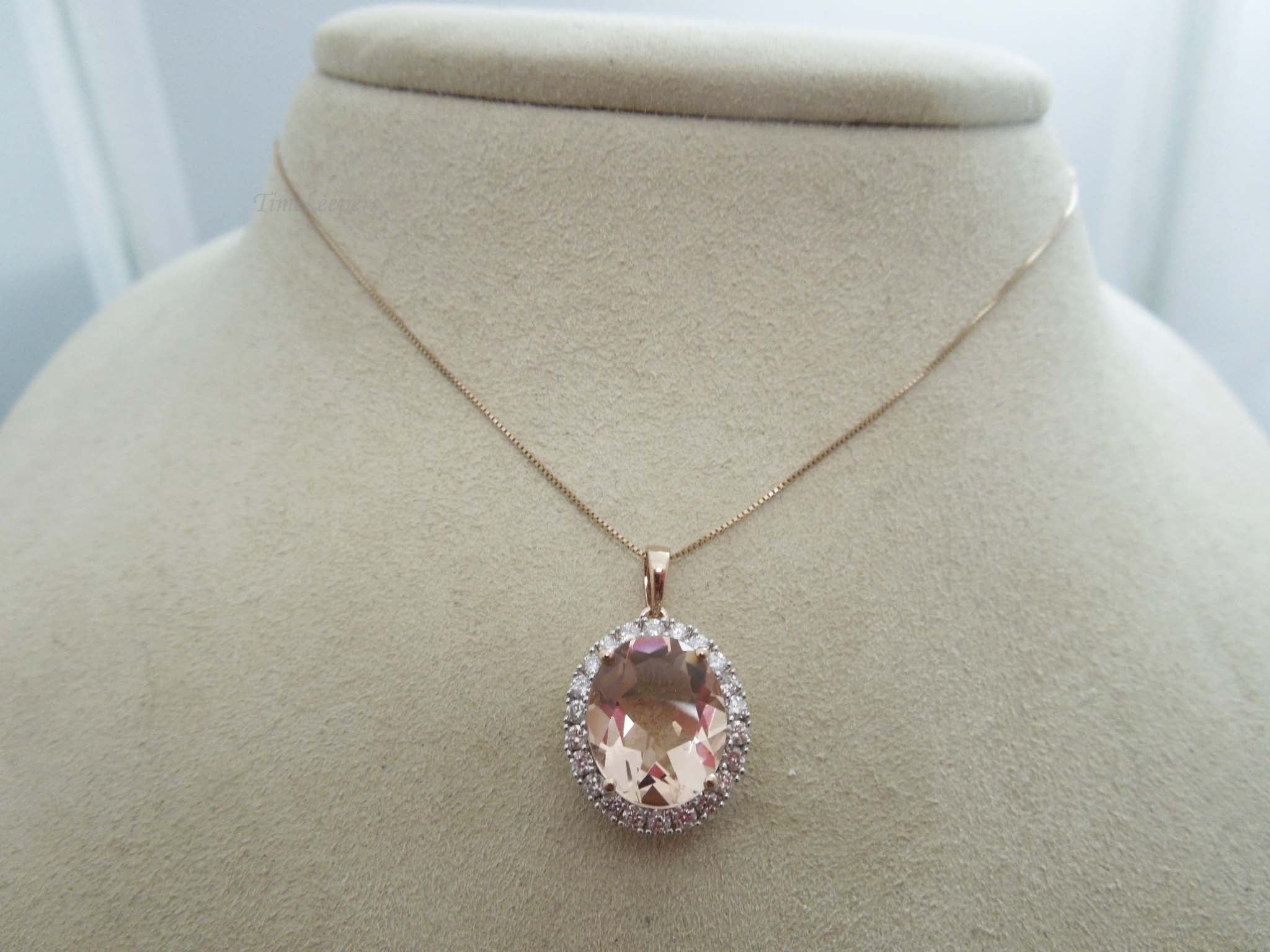 g559 Lovely Ladies 10kt Rose Gold Morganite and Diamond Pendant Necklace