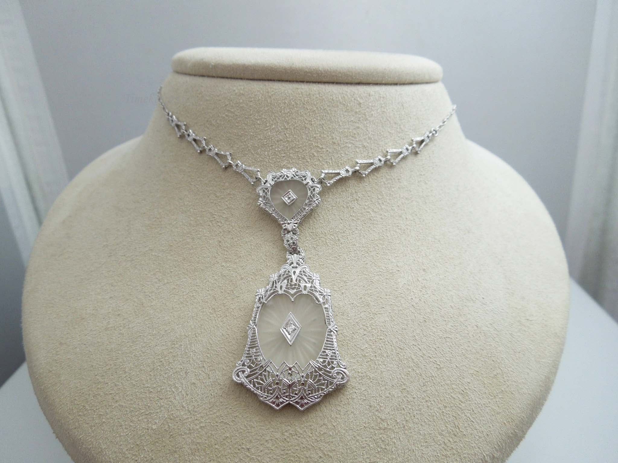 g610 Elegant Ladies 14kt White Gold Diamond Filigree Necklace Pendant