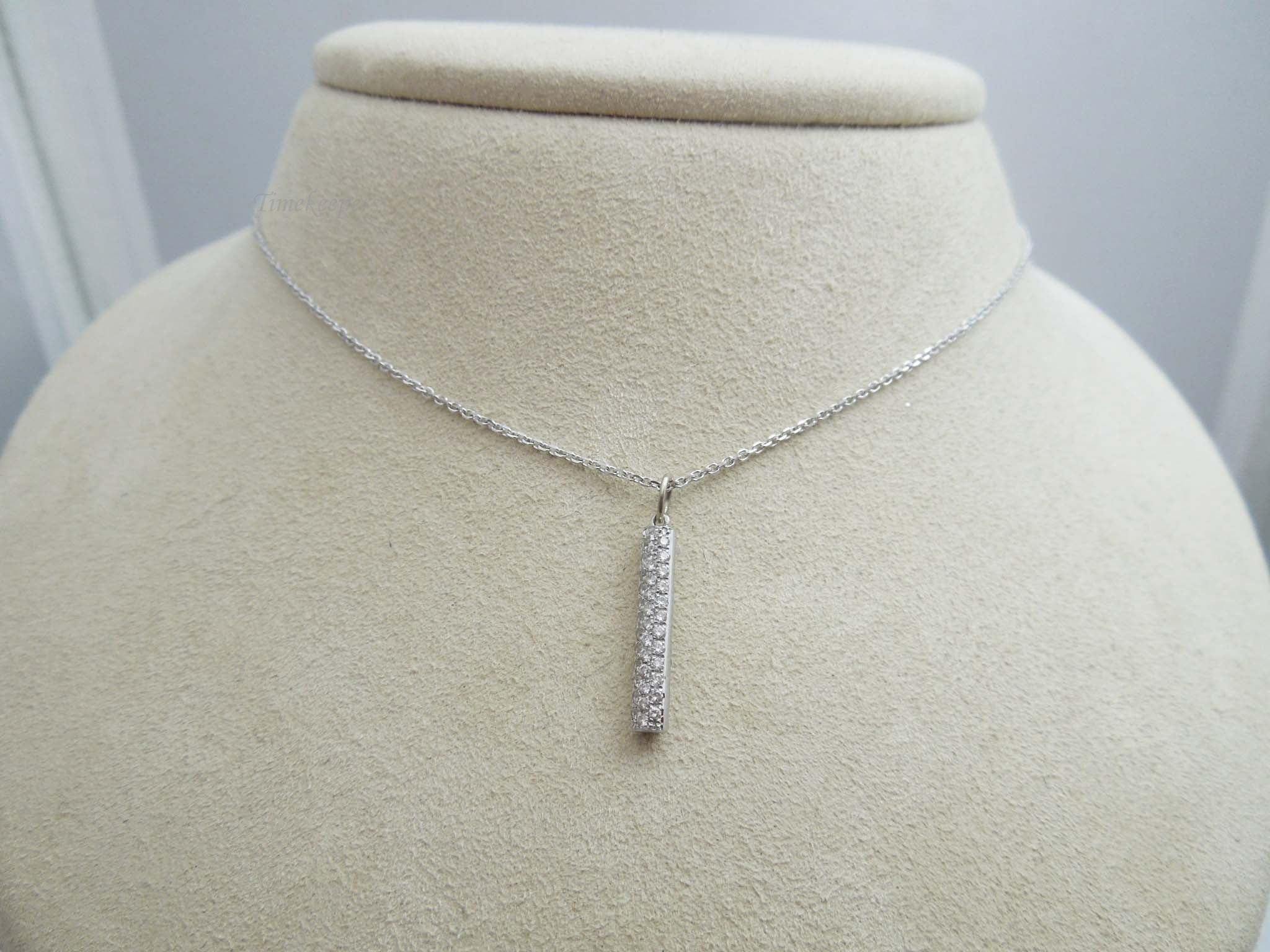 g679 Pretty Ladies 14kt White Gold Vertical Diamond Pendant and 18" Necklace