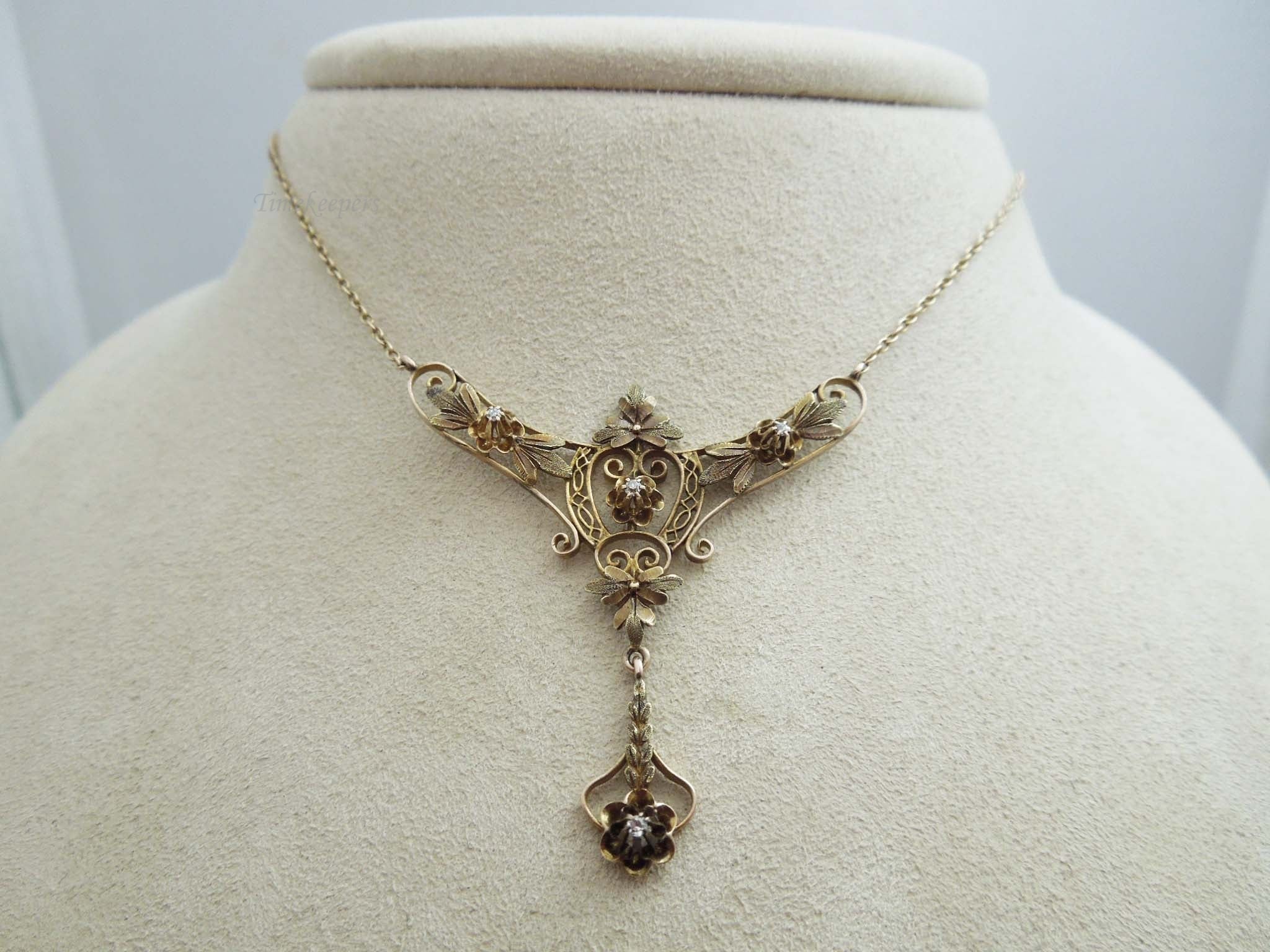 g744 Lovely Ladies Vintage 10kt Yellow Gold Diamond Floral Buttercup Necklace