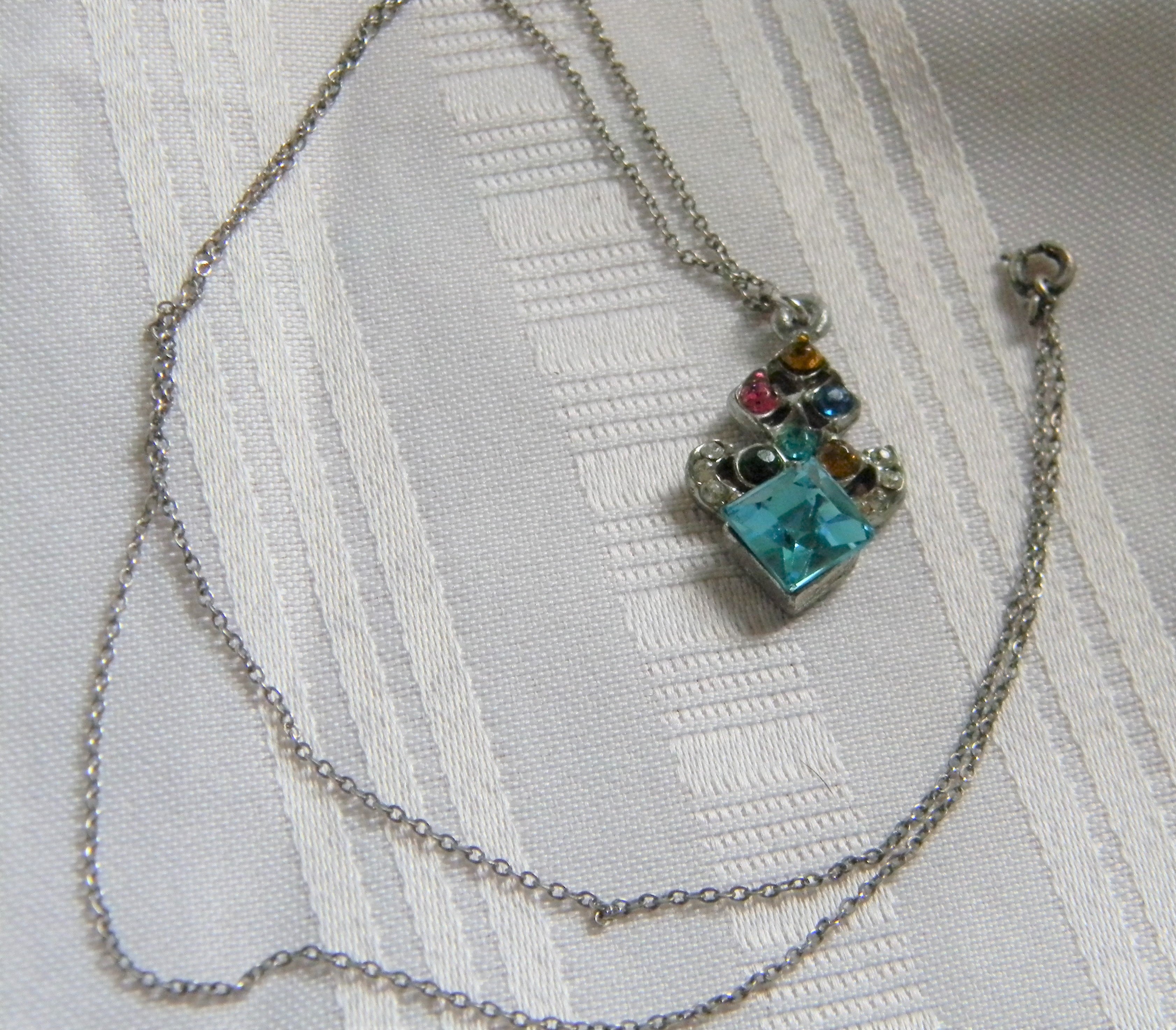 H830 Unique Silver tone Pendant with Glass Stones on Sterling Silver Chain
