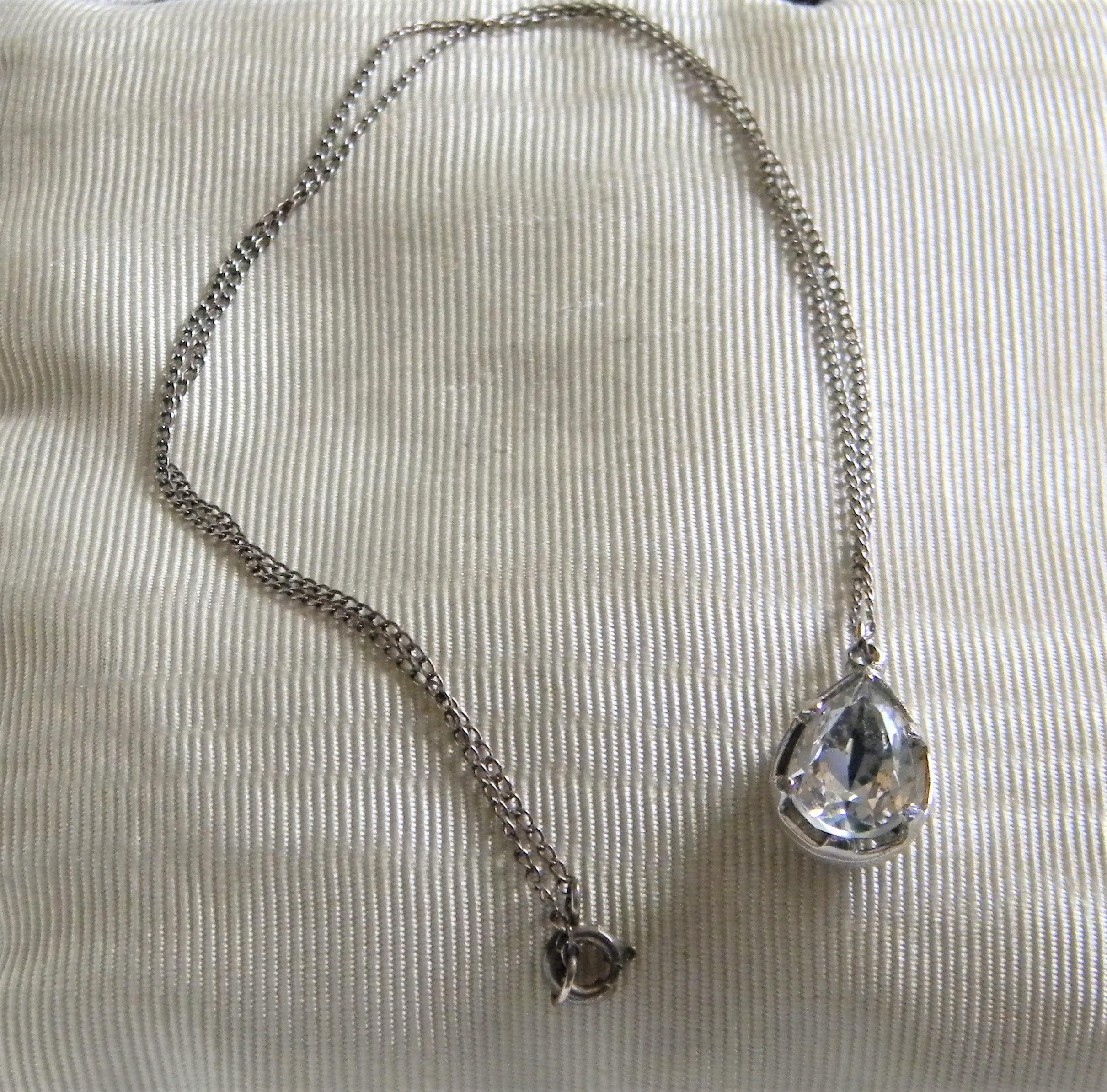 h842 Pretty Gold Tone Rolo Chain Necklace with Crystal Tear Drop Pendant