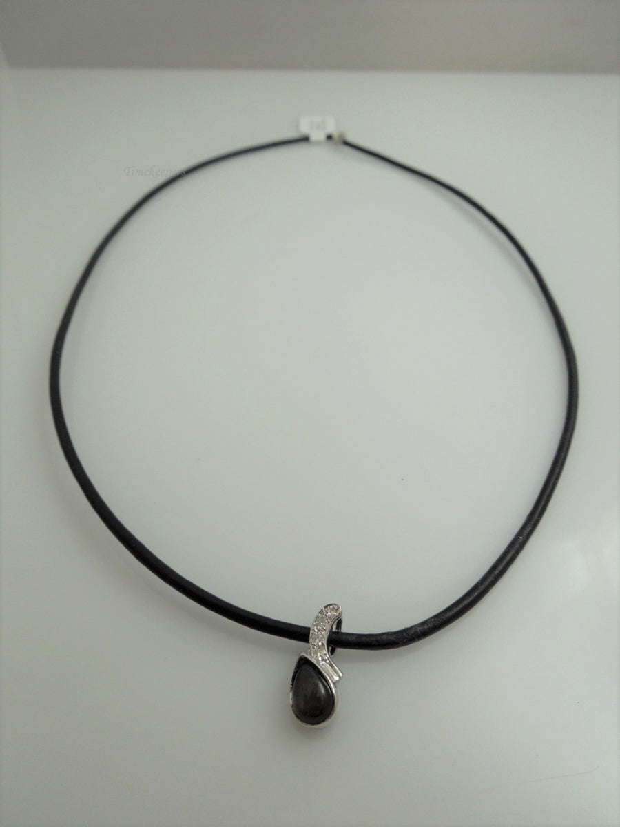g887 Lovely Ladies Diamond and Labradorite Pendant on a 17.5" Black Cord with 14kt White Gold Clasp