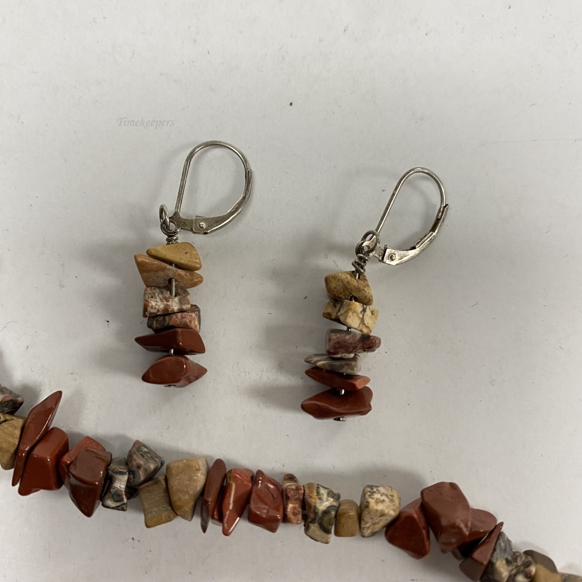 m064 Vintage Agate Sterling Silver Necklace 19" Long Necklace & Earrings Set