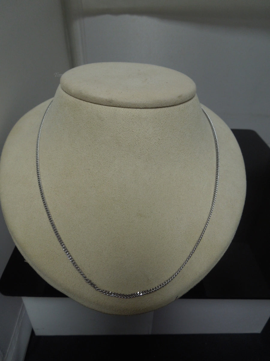 q628 14kt White Gold Diamond .15 cts Box Chain 18" Signed