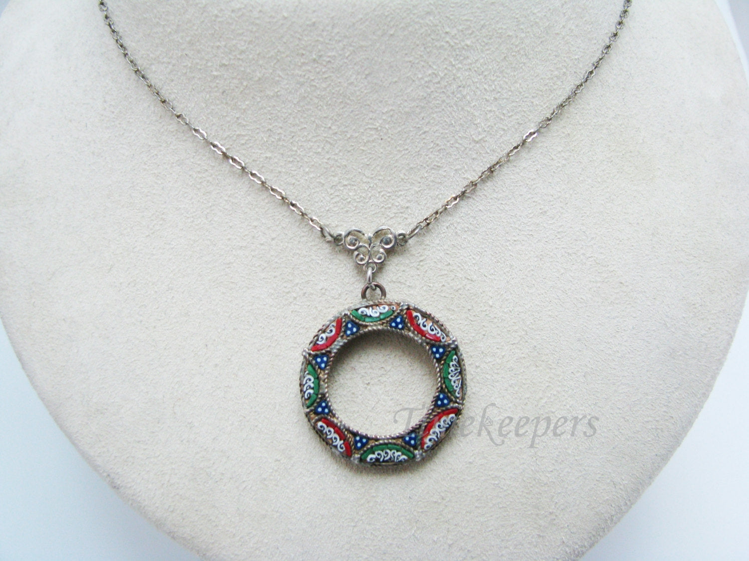 c489 Vintage - Micro Mosaic Donut Shape Necklace in Brass & Silver Tone Chain