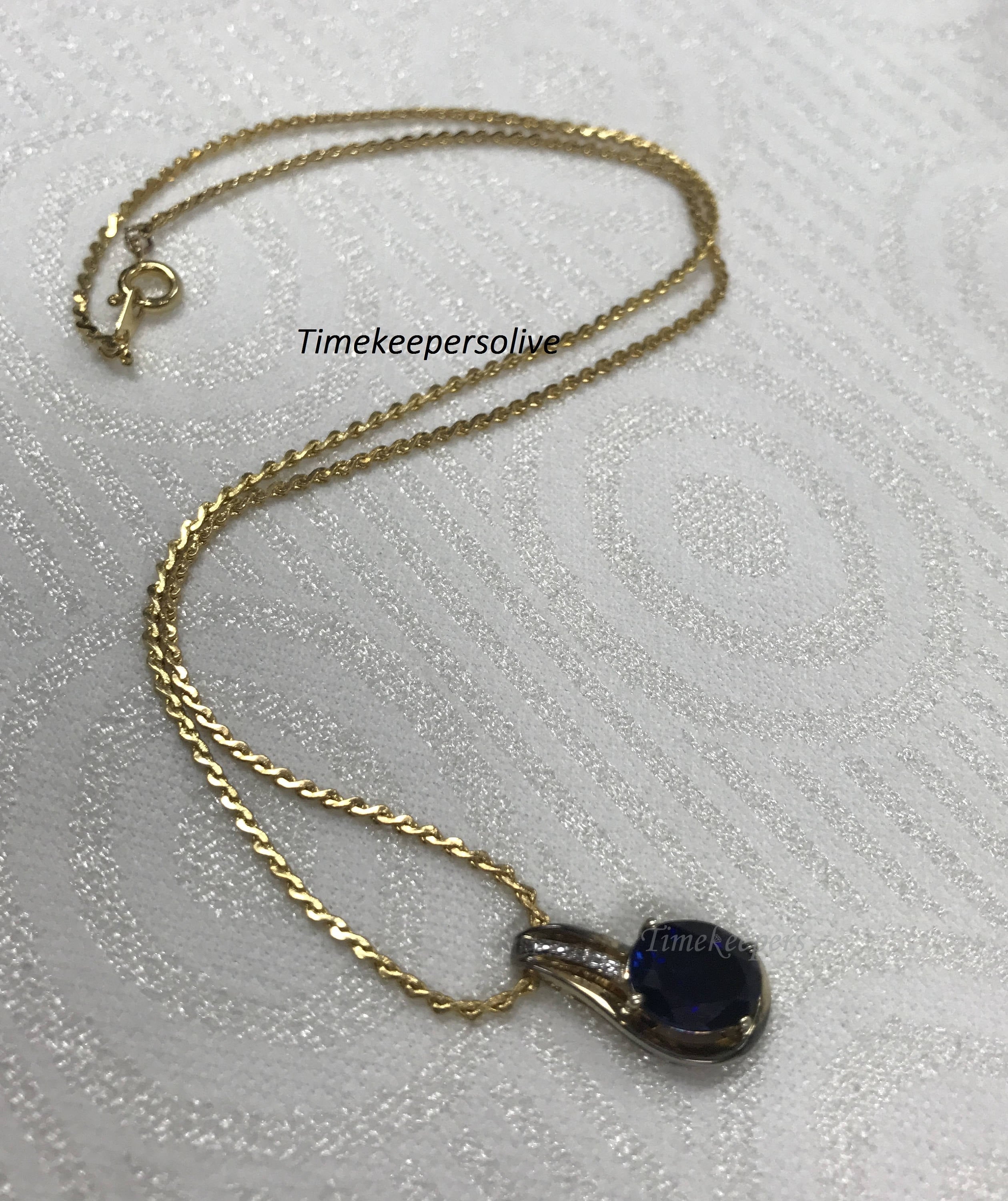 b120 Gorgeous Vintage Gold Filled Silver Blue Stone Pendant 18" Chain Necklace + Gift