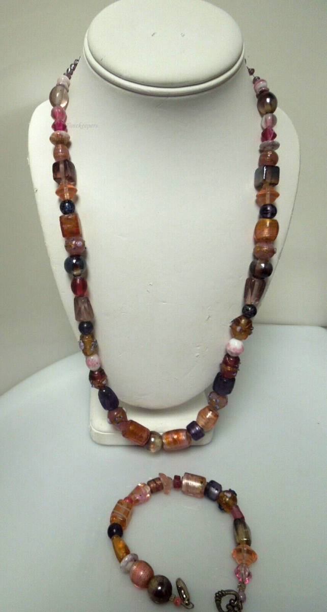 s118 Vintage Multicolor Glass Beads Necklace and matching bracelet 6.75"