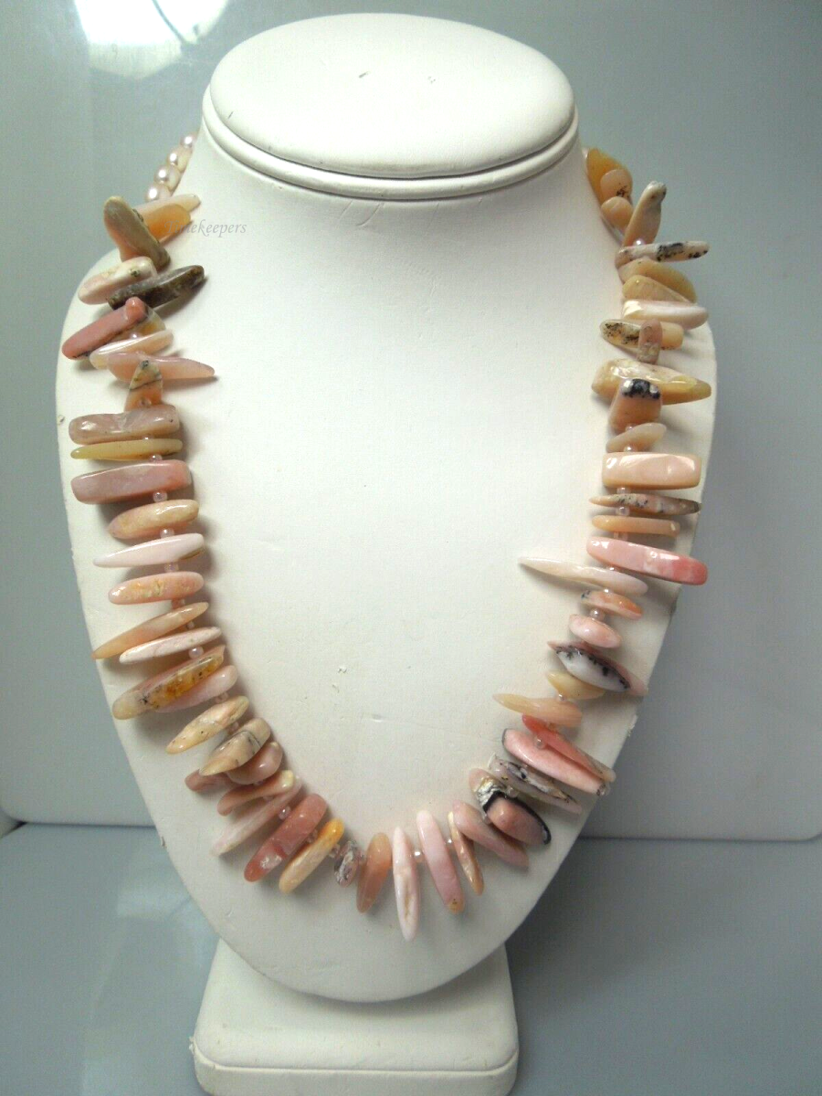 s104 Vintage Pink Agate or Rhodochrosite Spike fringe style Necklace 18"