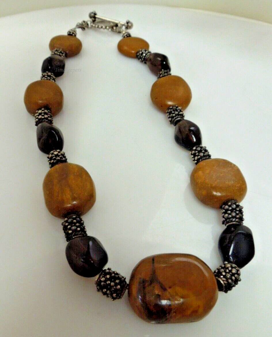 s738 Vintage Sterling Silver Big Chunky Butterscotch color Toggle Clasp Necklace 18"