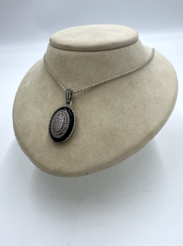 t640 Judith Ripka Cubic Zirconia & Onyx Cluster Necklace