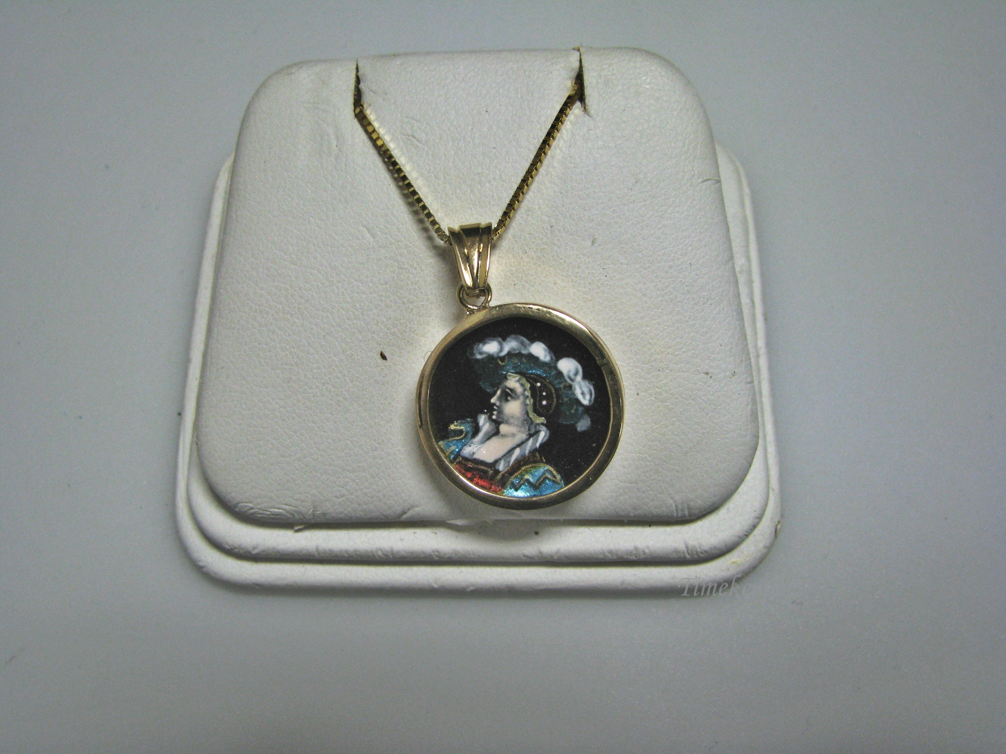 H066 Unique Painted Enamel Cameo Necklace in 14k Yellow Gold