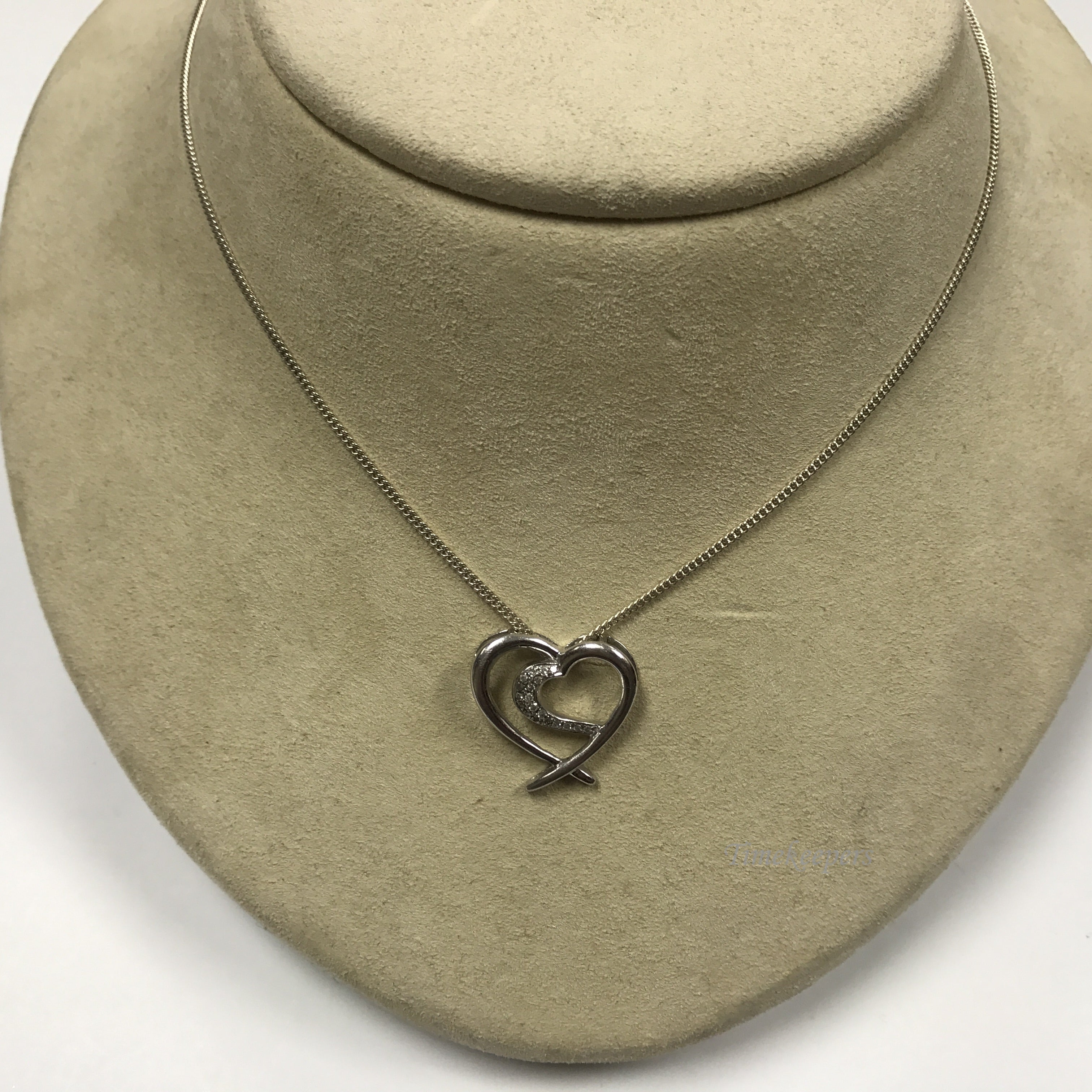 d477 Vintage Sterling Silver Diamonds Heart Pendant Chain Necklace 17" Long