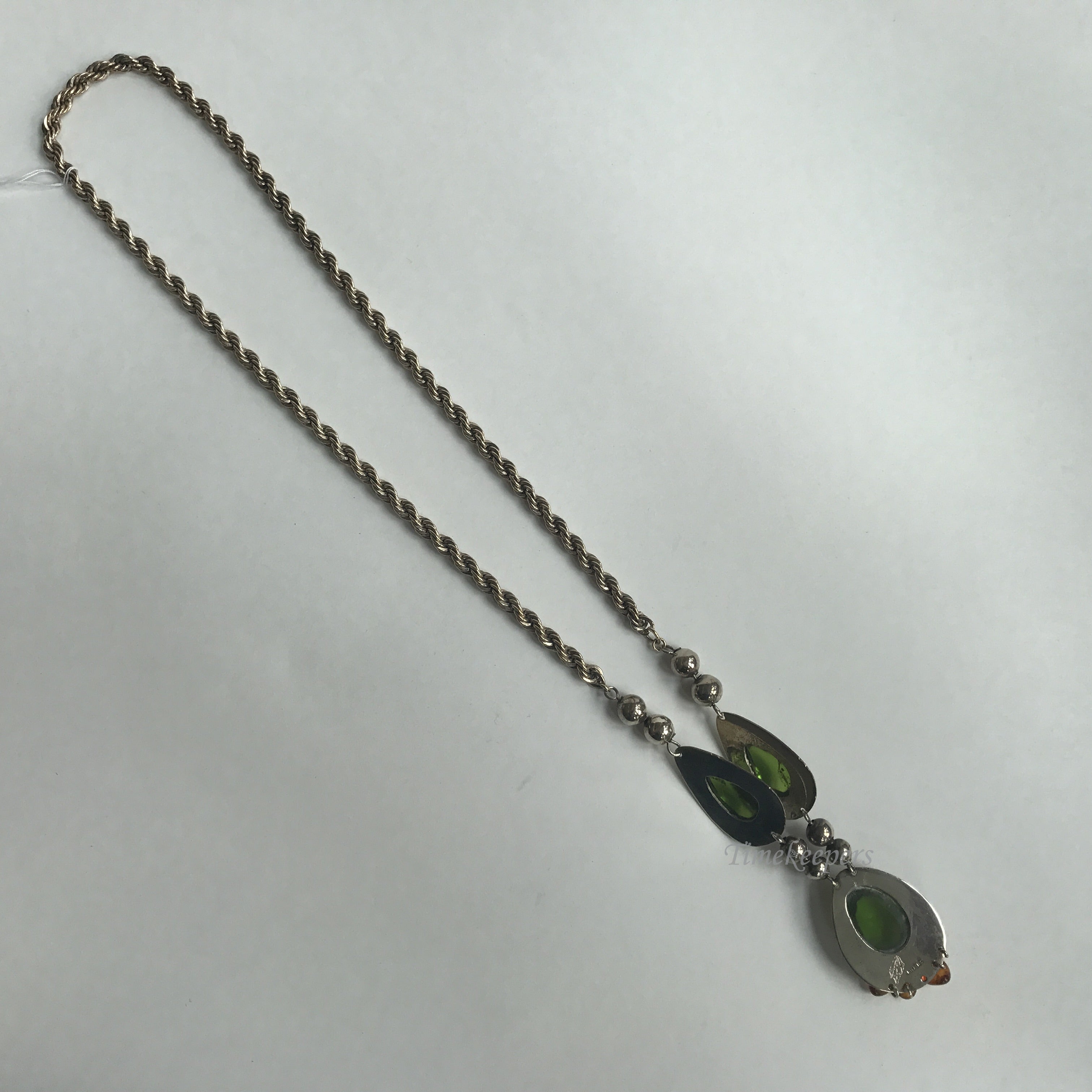 e341 Vintage Sterling Silver Green Red Stones Teardrop Necklace