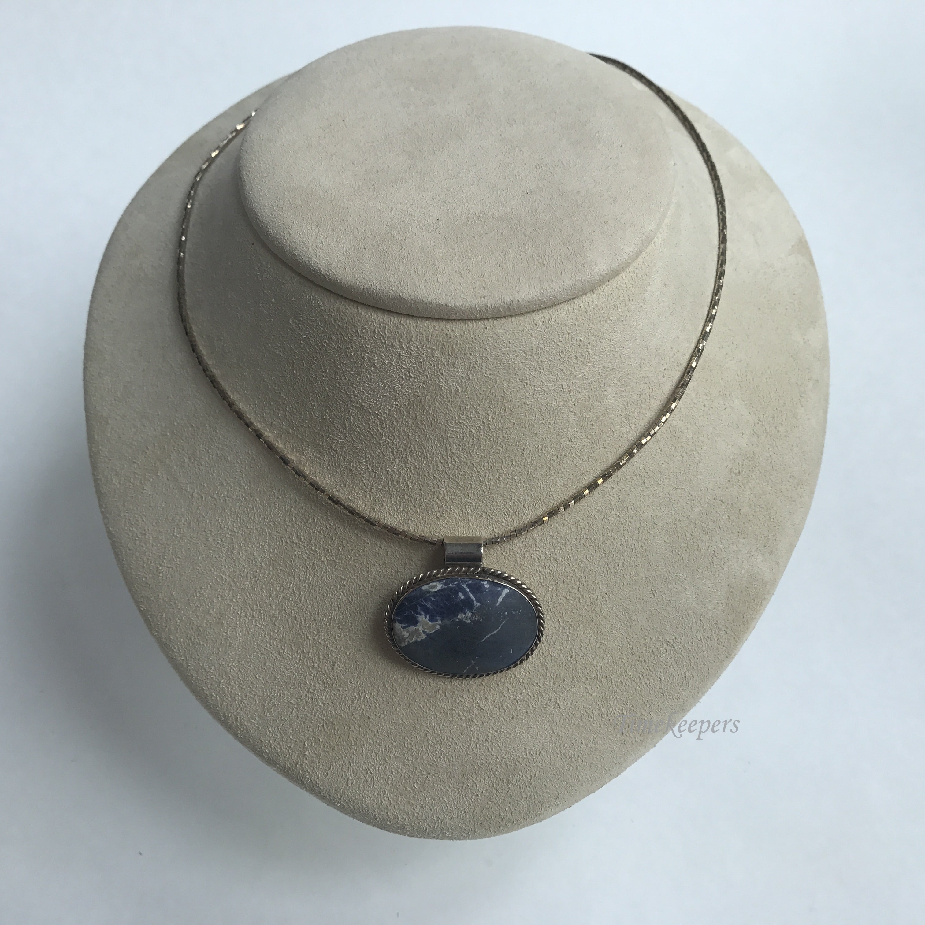 e343 Vintage Sterling Silver Oval Blue Stone Chain Necklace