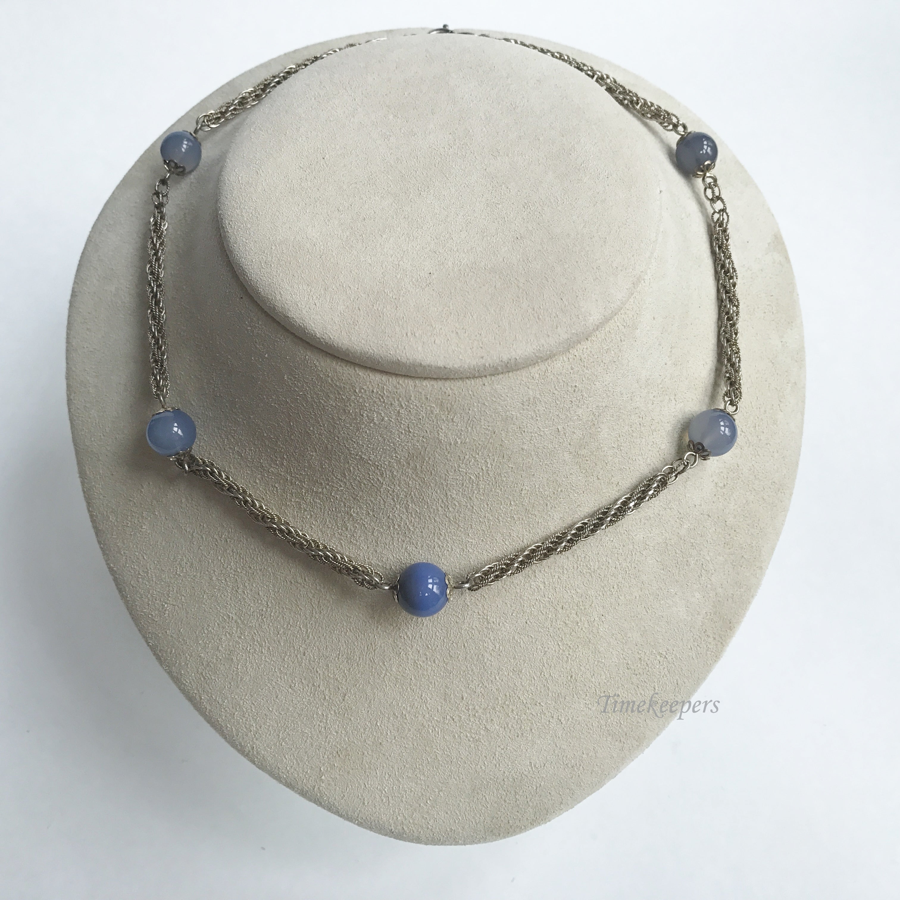 e344 Vintage Sterling Silver Round Blue Stone Chain Necklace