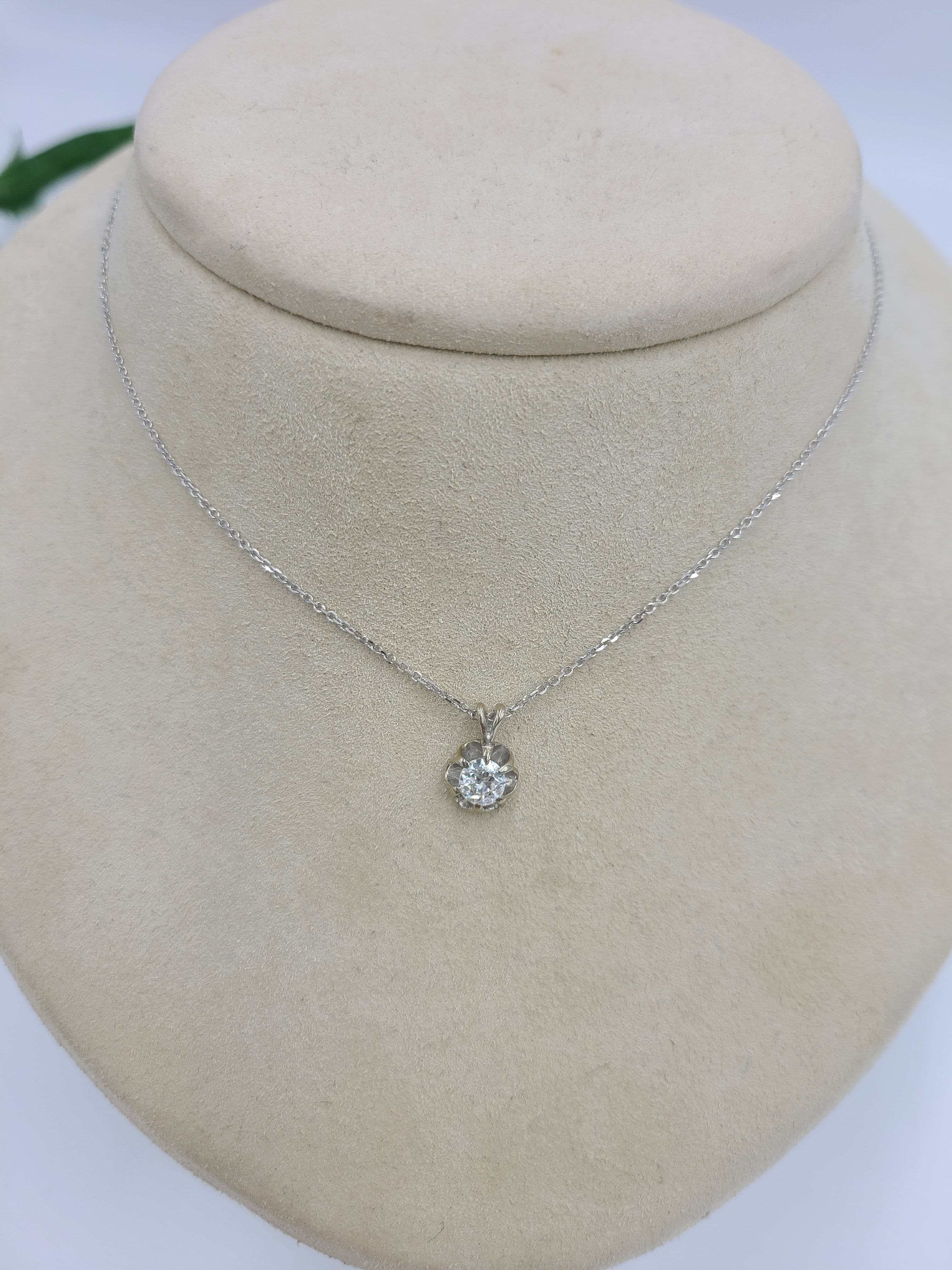e768 Vintage 14K White Gold .45CT Diamond Pendant 16" Chain Necklace