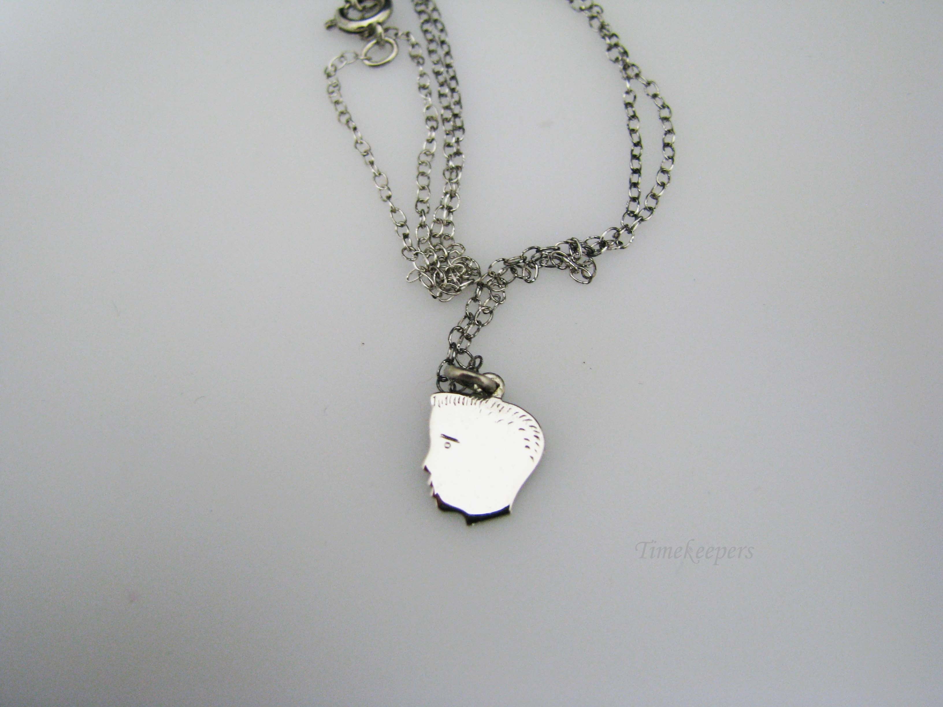 j111 Vintage Sterling Silver Silhouette Boy Head Pendant with Chain