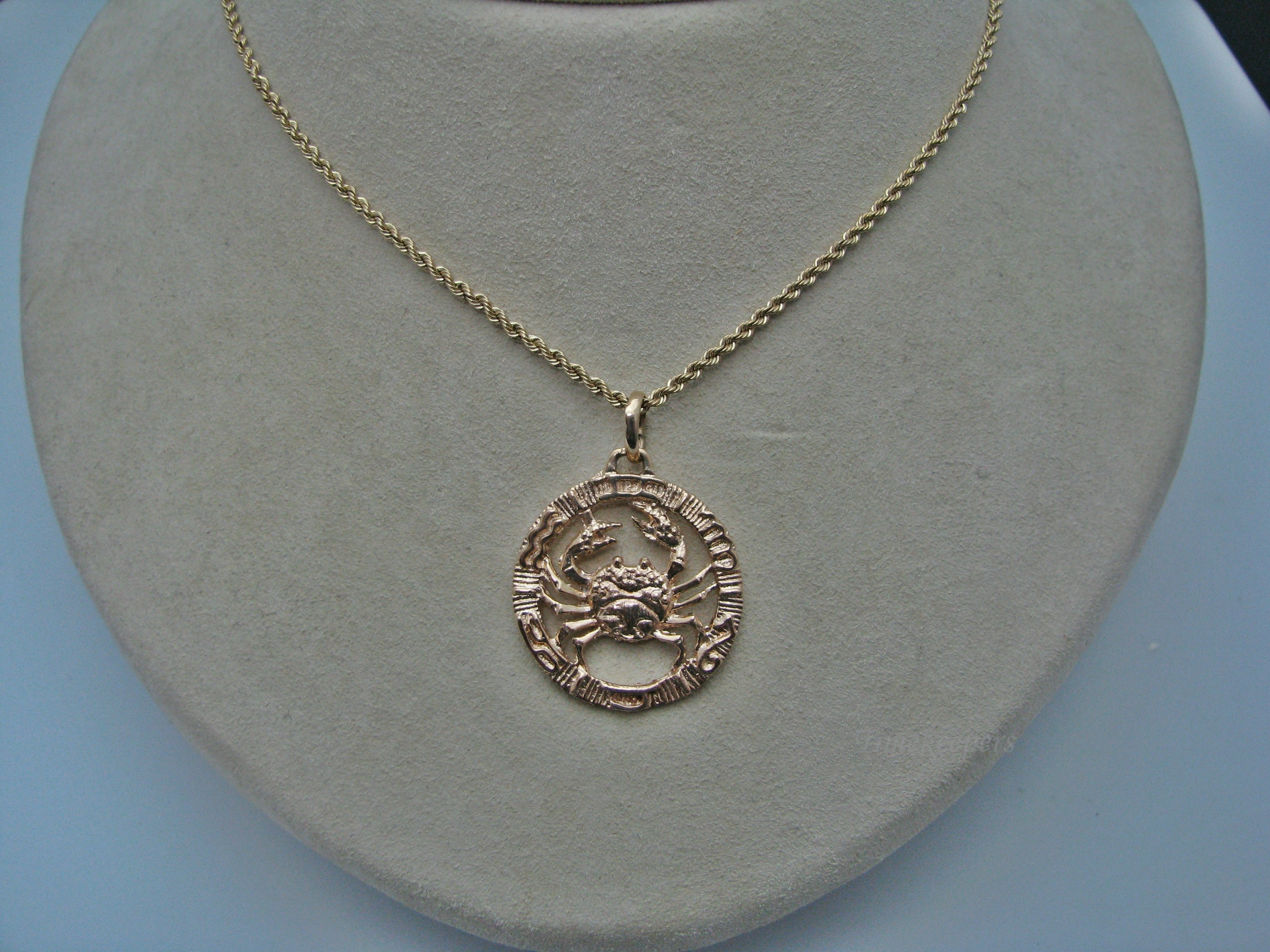 H273 Beautiful 14k Rose Gold Cancer Sign Zodiac Pendant on 20" Yellow Gold Chain