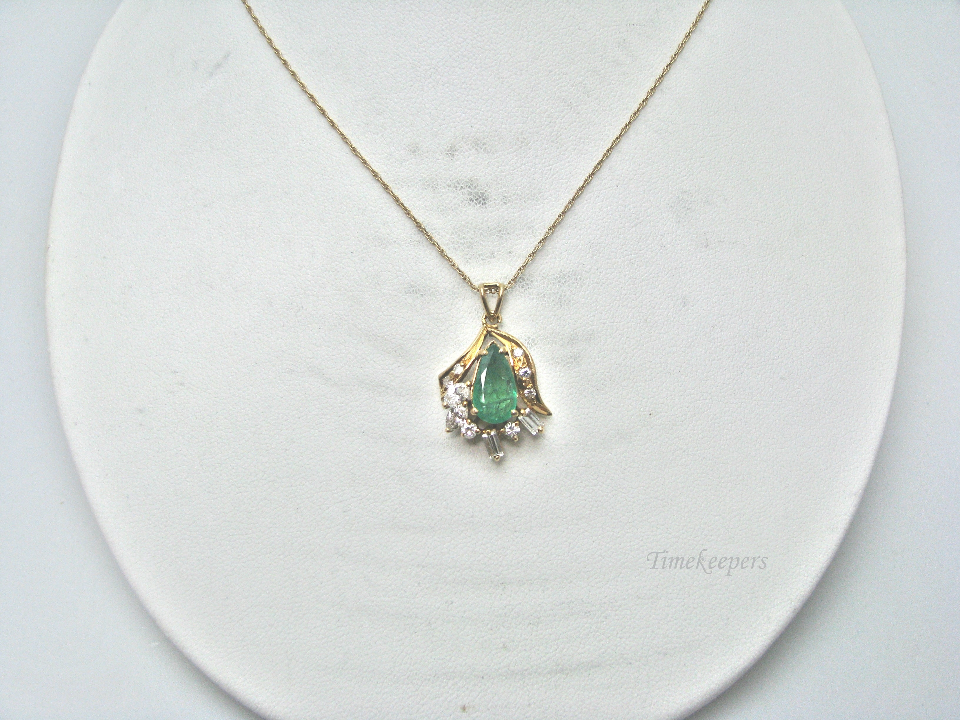 H280 Stunning 14k Yellow Gold Emerald Necklace with Multiple Diamonds