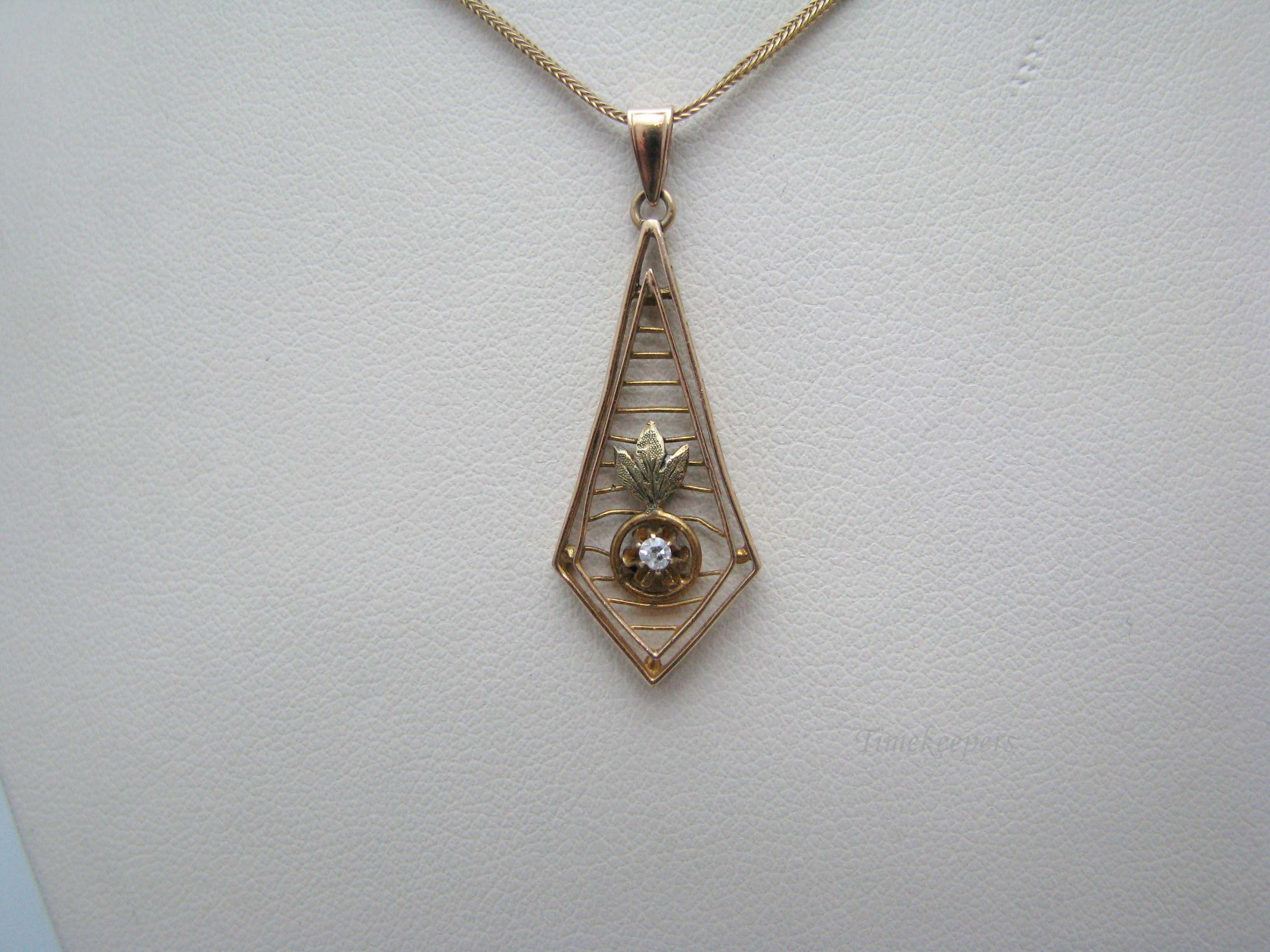 j180 Beautiful Vintage 14k Yellow Gold Diamond Pendant on 18" Chain
