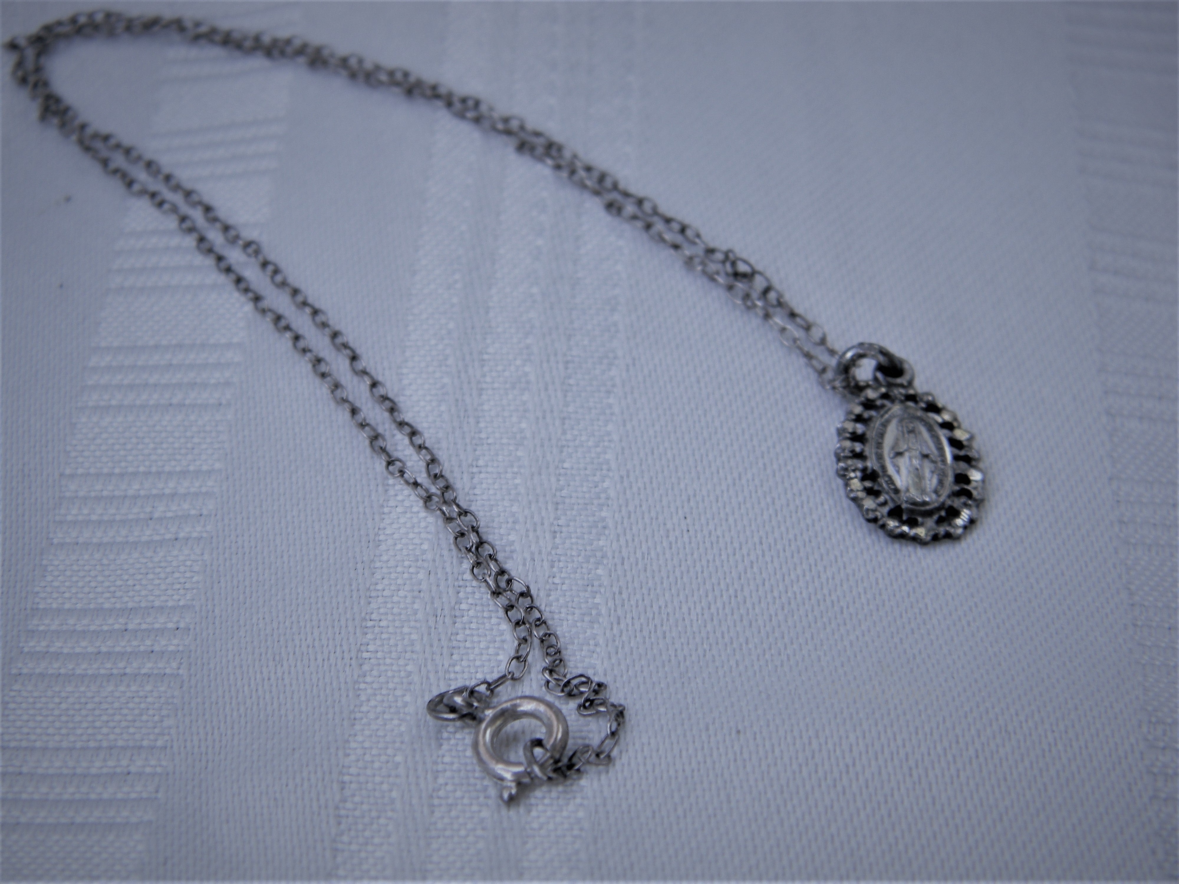 j406 Vintage Catholic Miraculous Medal in Sterling Silver Pendant Necklace
