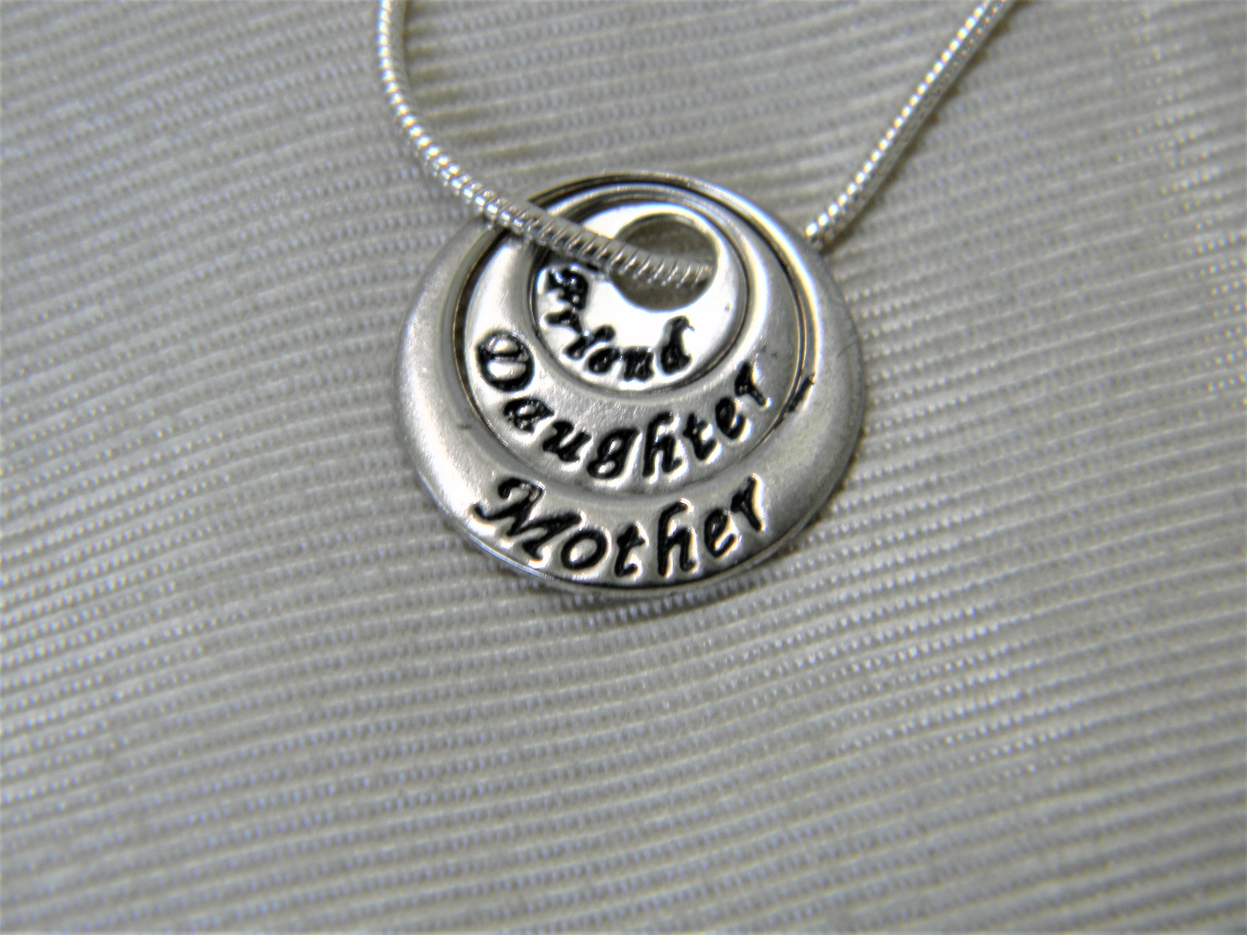 j452 Beautiful Sterling Silver Necklace with (3) Circle Pendant-Mother-Daughter