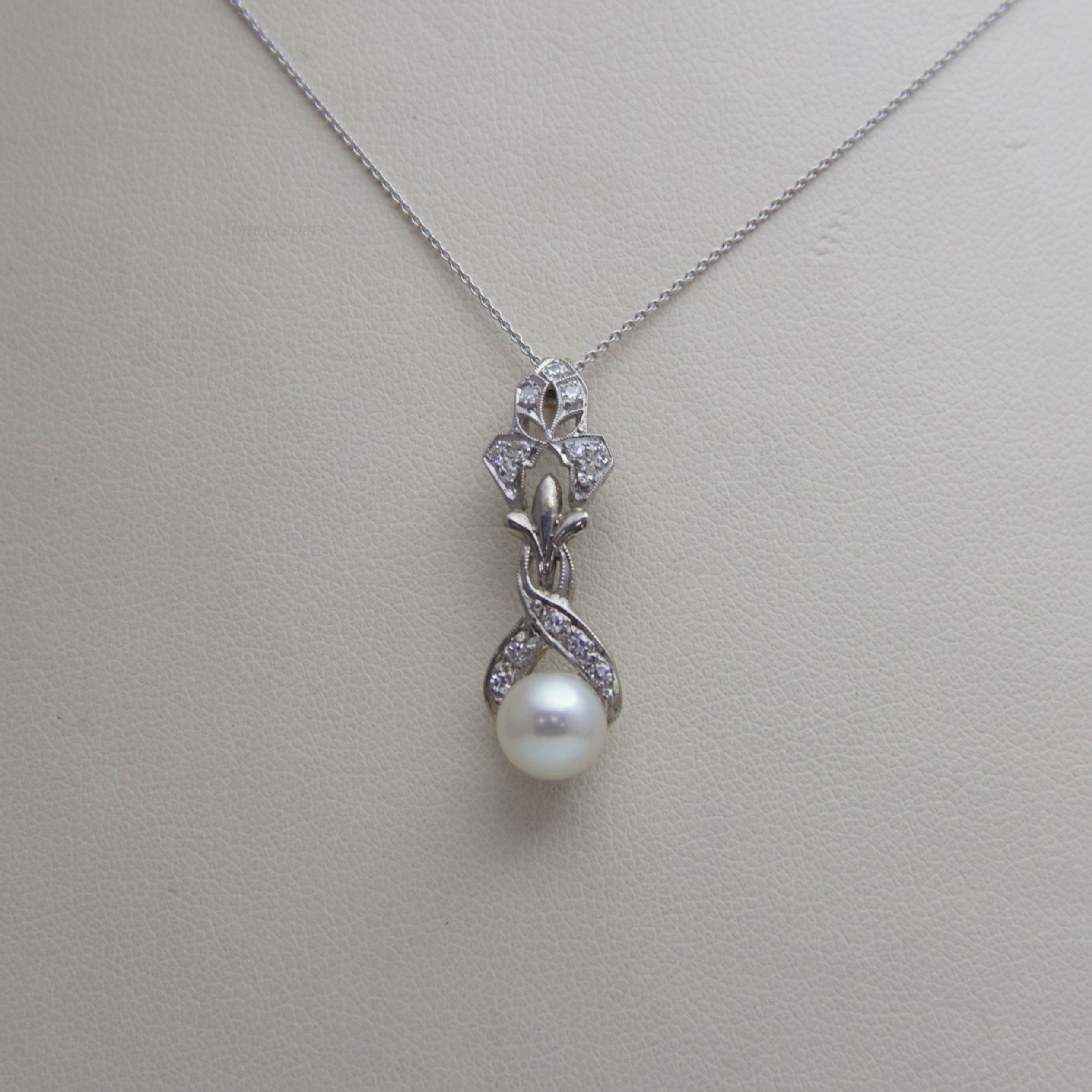 d629 Gorgeous 14k White Gold Pearl & Diamond Necklace and Pin/Brooch
