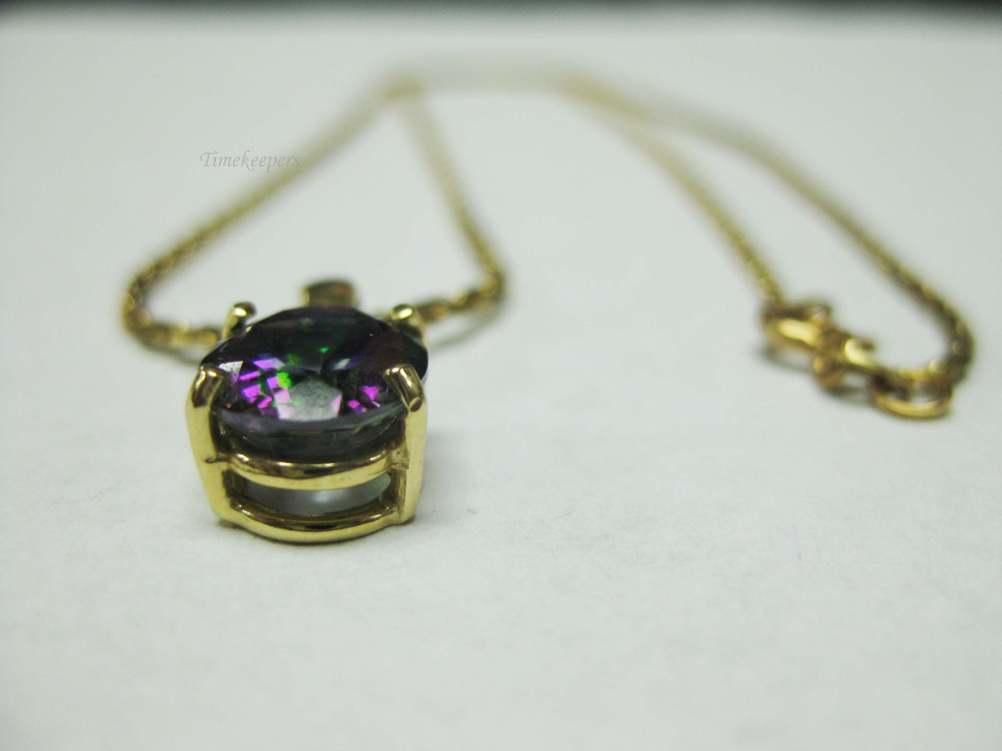 b694 Beautiful 14kt Yellow Gold Cable Link Necklace with 14kt Mystic Topaz Pendant