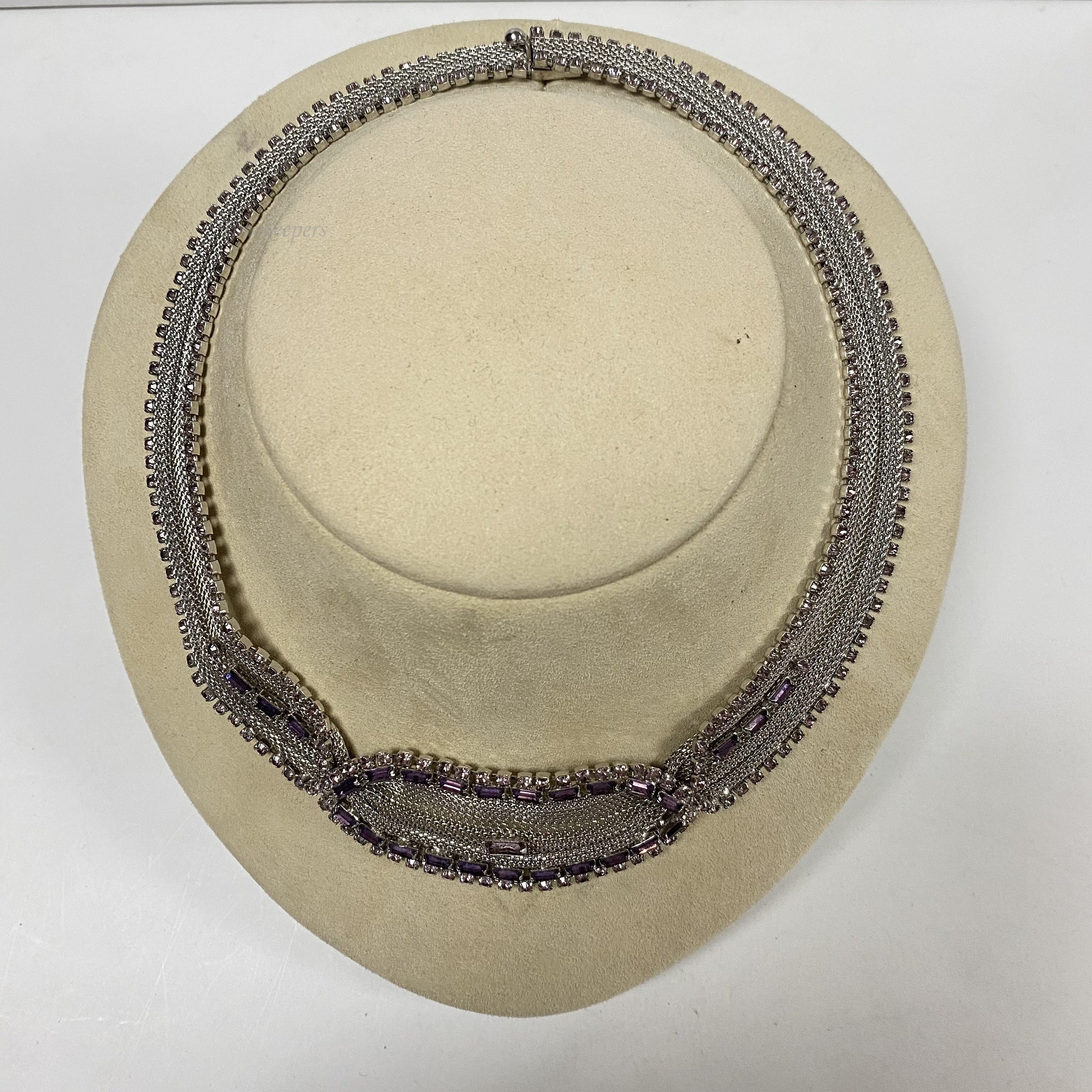 j945 Vintage Stunning Sterling Silver Mesh Designer Necklace Lilac Stone by Hobe