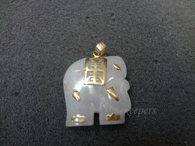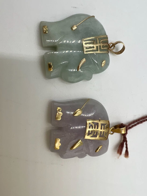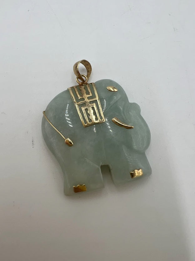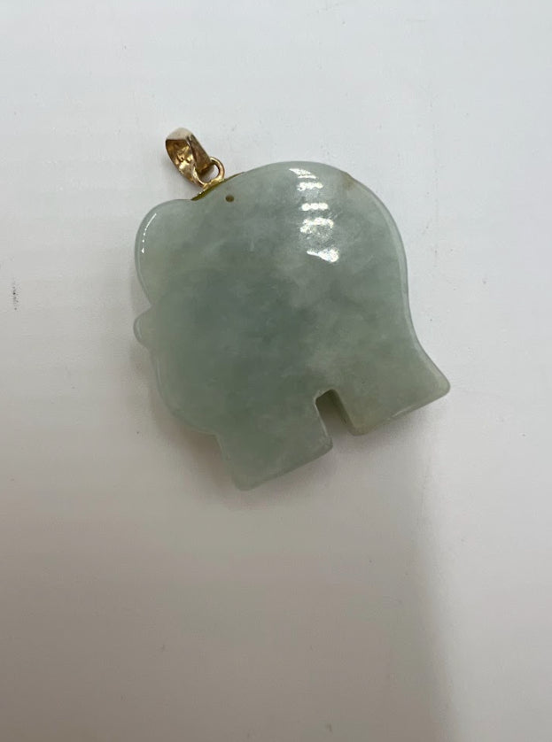 For Sale: (1) 14k Yellow Gold and Jade Chinese Elephant Amulet Pendant.